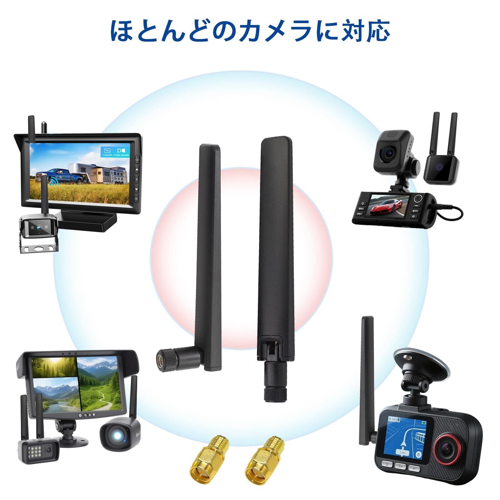 互換性: WiFi IP セキュリティ カメラ、ワイヤレス ビデオ監視 DVR レコーダー、トラック RV バン トレイル リア ビュー カメラ、リア ビュー カメラ、リア ビュー カメラ、産業用ルーターの IoT ゲートウェイ モデム、M2M ターミナル、リモート監視および制御、ワイヤレス ビデオ、ワイヤレス HDMI エクステンダー。