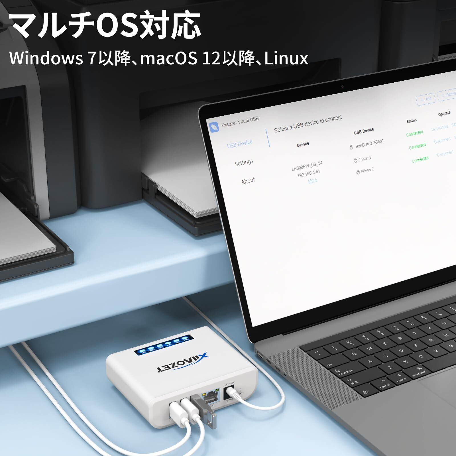 USBデバイス共有サーバー|ワイヤレス接続対応(プリンター・スキャナーなど)|LAN/Wi-Fi対応|Windows・Mac・Linux対応|仮想USBソフト付属(LK300EW)