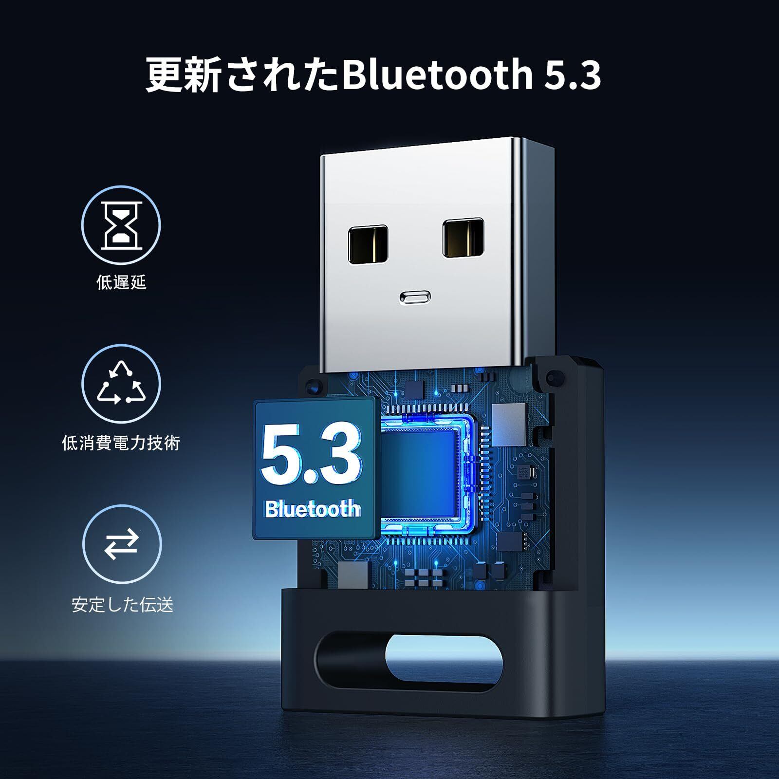UGREEN USB 5.3Bluetoothアダプタ、PC用5.3 Bluetoothアダプター、Windows 11/10/8.1専用 プラグ&プレイ、キーボード/マウス/ヘッドフォン/スピーカー/プリンタ用 Bluetooth受信機&送信機 【TELEC認証済み】