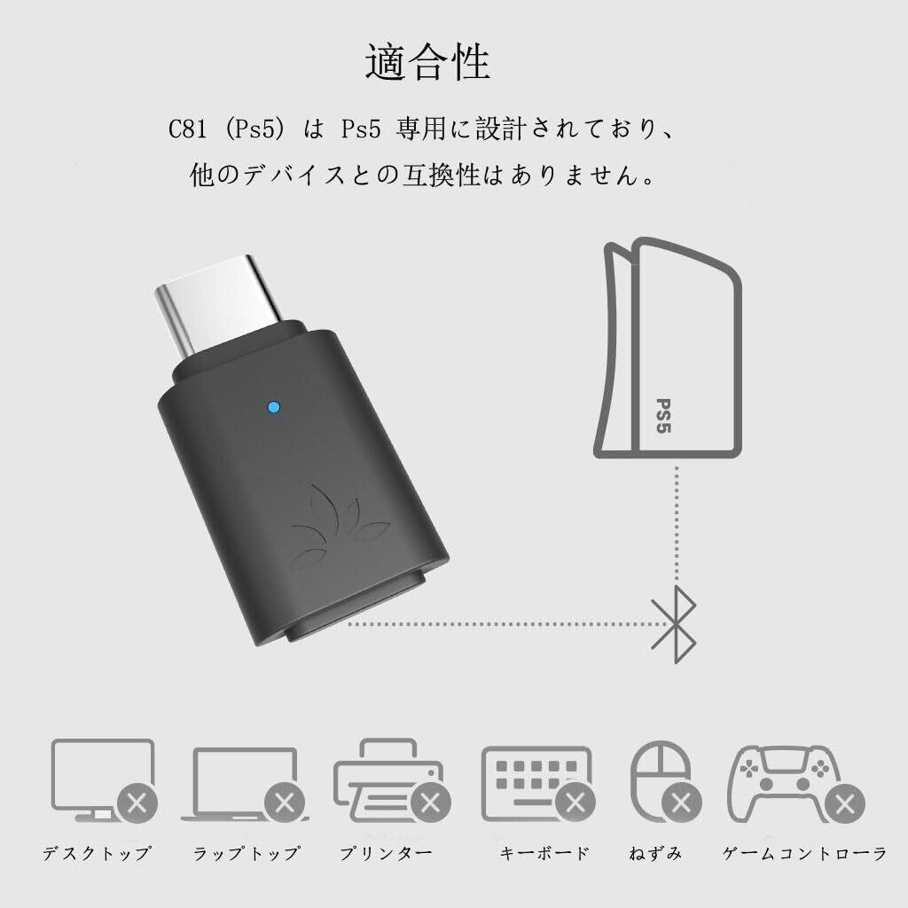 Avantree C81-Gaming - PS5用USB-C Bluetooth 5.3オーディオアダプター、Qualcommチップ、aptX Adaptive & HD、プレミアムサウンド、AirPods、Boseヘッドホンなどに対応
