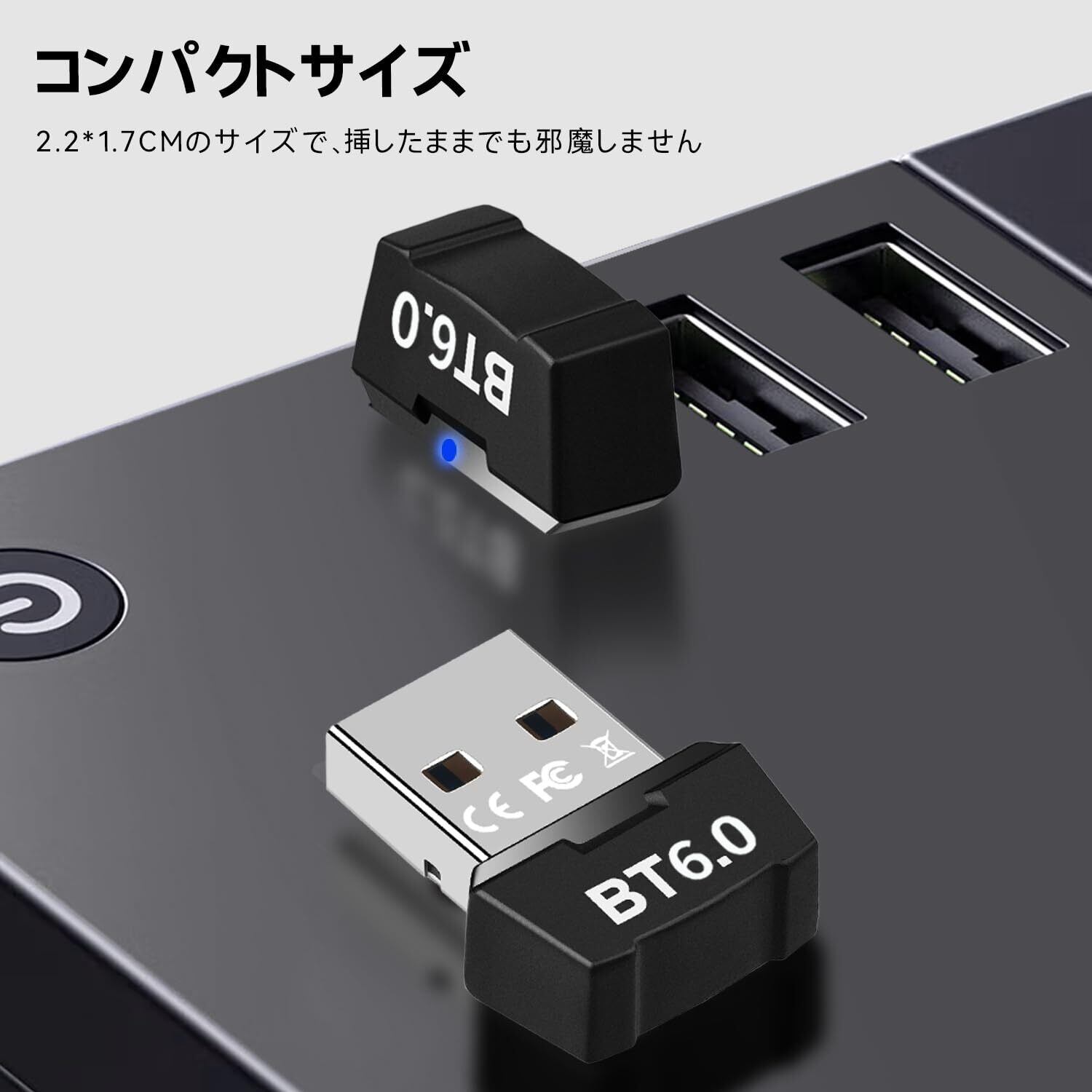 Bluetoothアダプタ USB Bluetooth6.0対応 ブルートゥーストランスミッター 低遅延 小型 EDR&BLEデュアルモード 最大通信距離20-30m ドライバー不要 Windows8/10/11適用