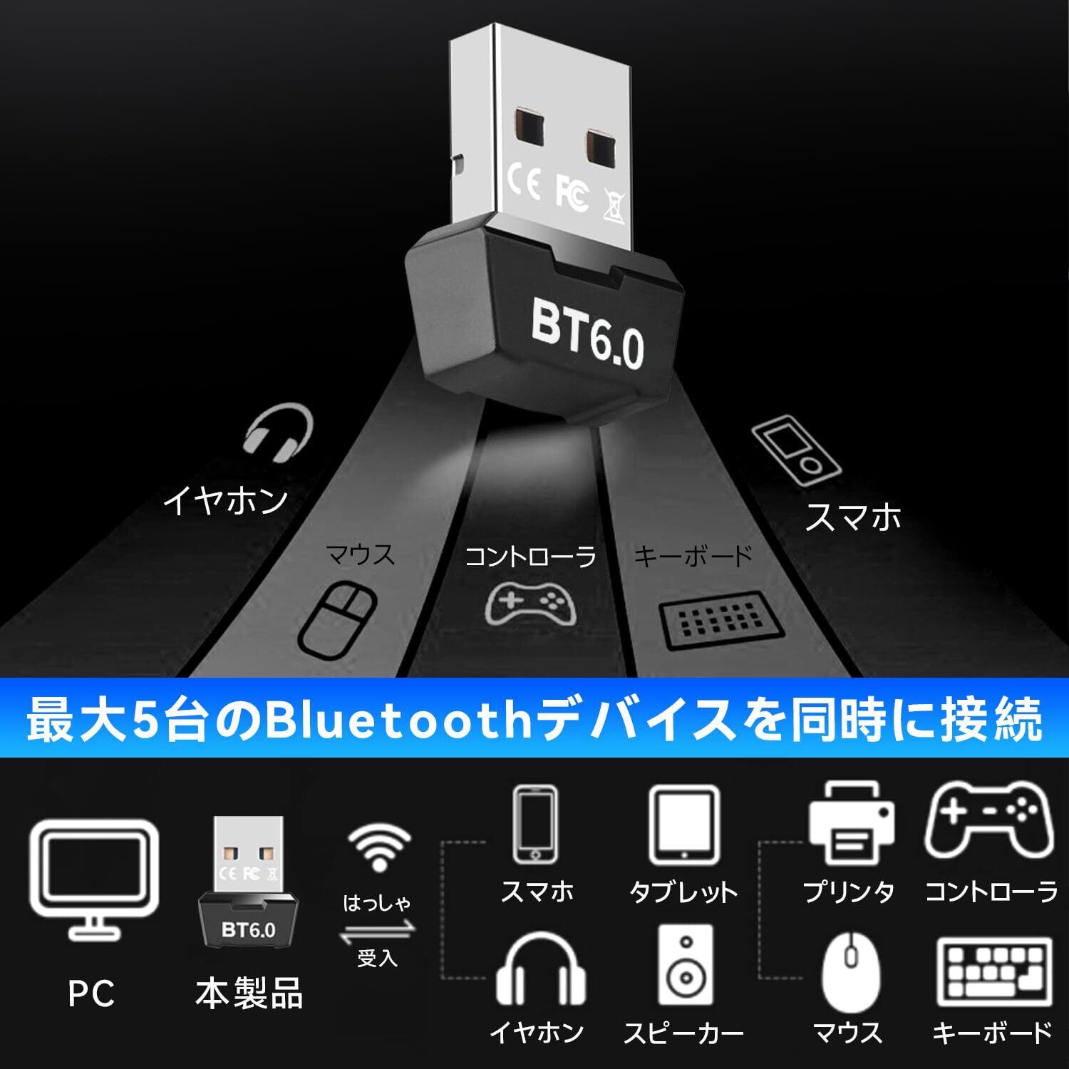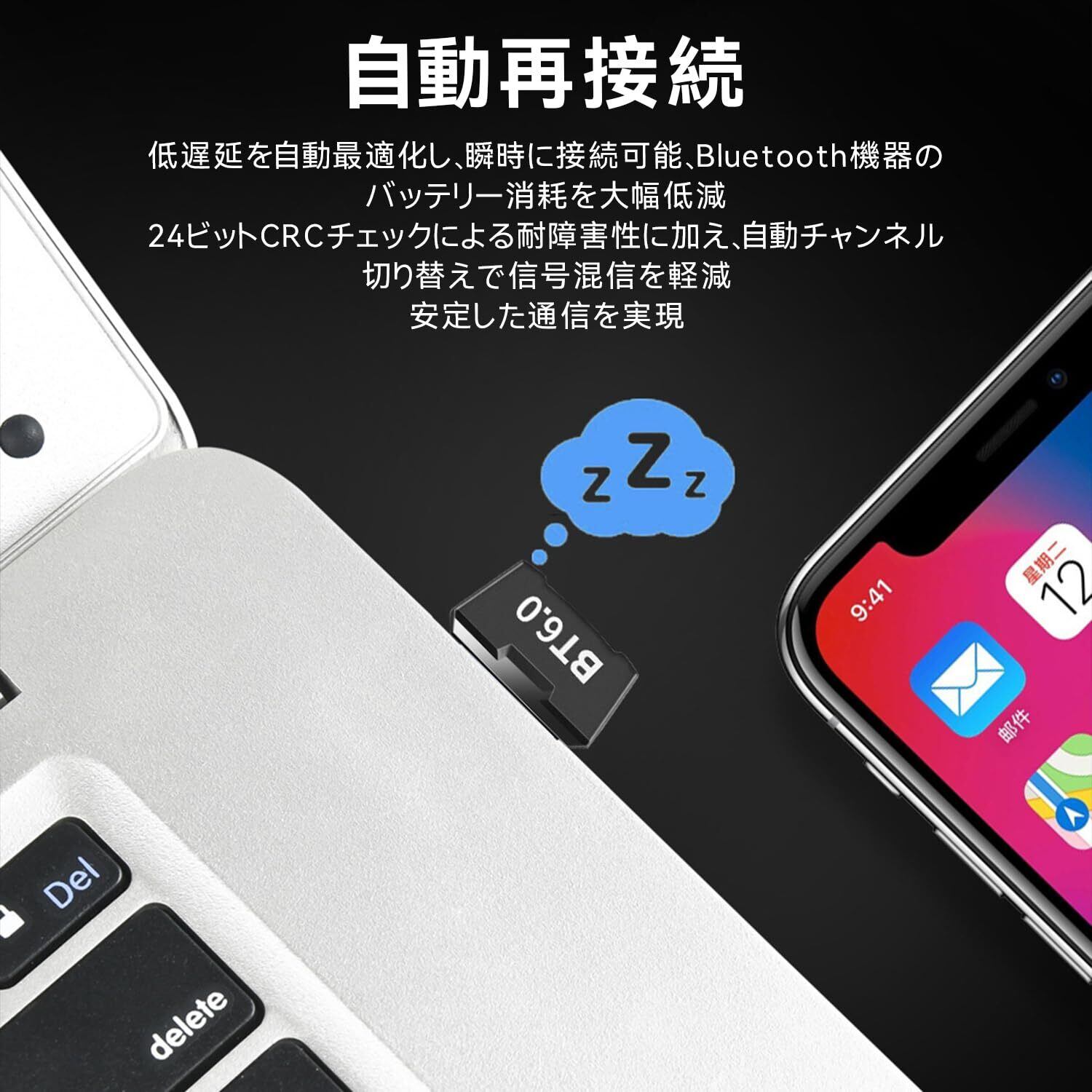 【最新Bluetooth 6.0で高速接続】 当社のUSBアダプタは、最新Bluetooth 6.0 EDRテクノロジーを搭載。データ転送速度が大幅向上し、マウス Bluetooth操作やヘッドセット Bluetoothでの高音質ストリーーミングをスムーズに実現。EDR&BLEデュアルモードにより、ファイル転送も効率化します。※telec認証済み。