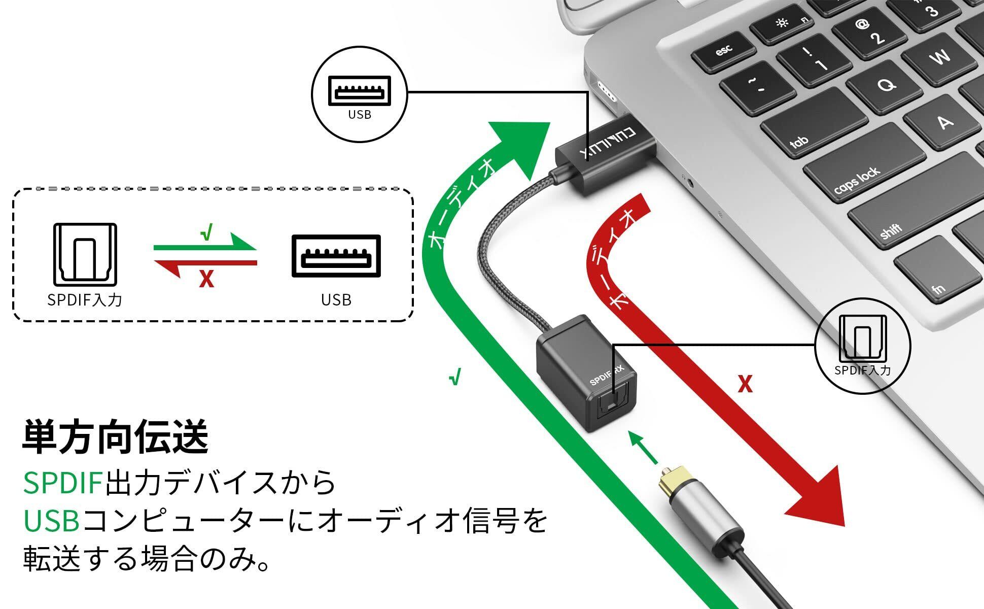 [光信号レコーダー] - Cubilux USB SPDIFレシーバーは、オプティカルオーディオ信号をラップトップやコンピュータに簡単に伝送し、レコーディング、モニタリング、ストリーミングを可能にします。このアダプターはUSBデバイスからの音楽再生には対応していませんのでご注意ください。