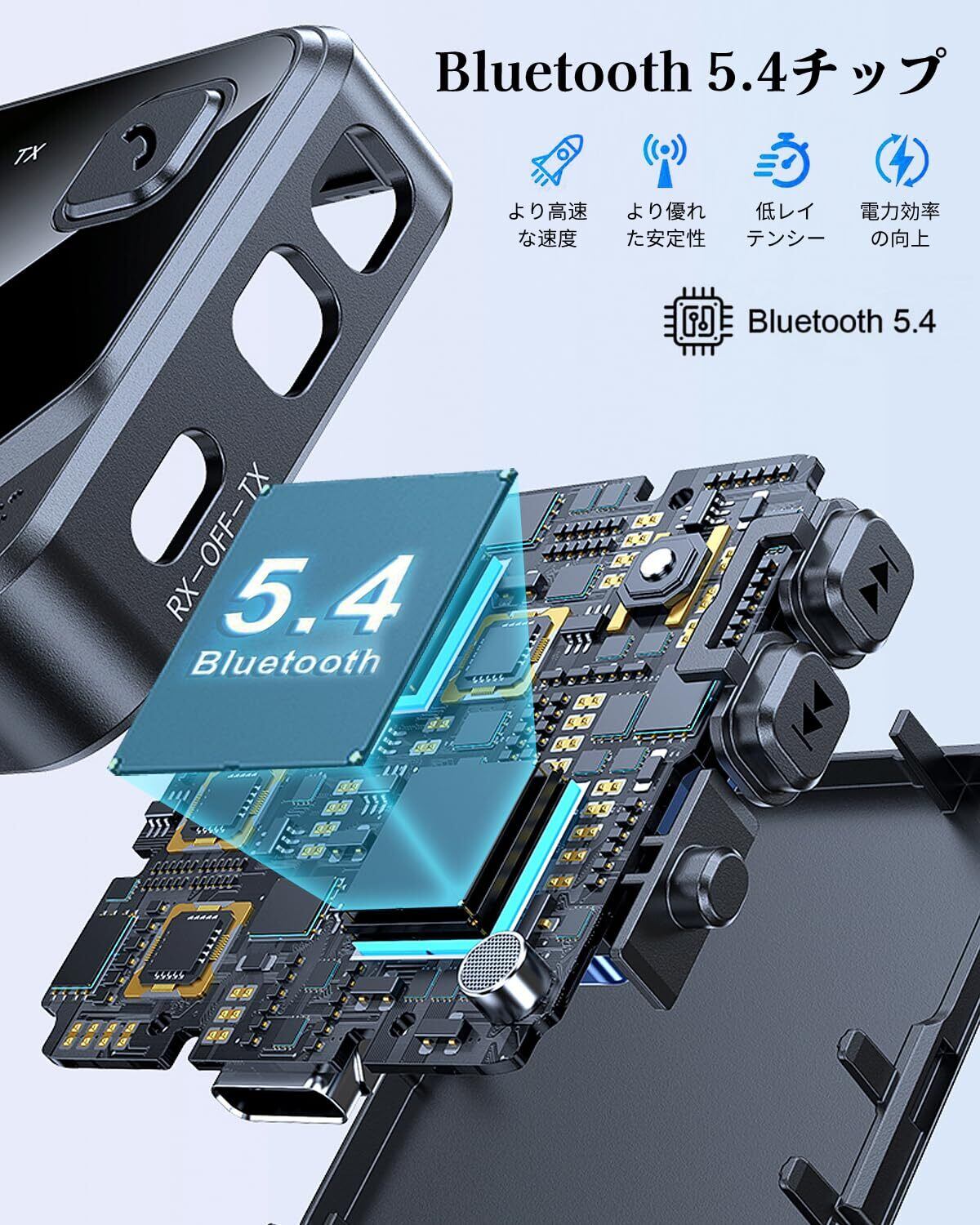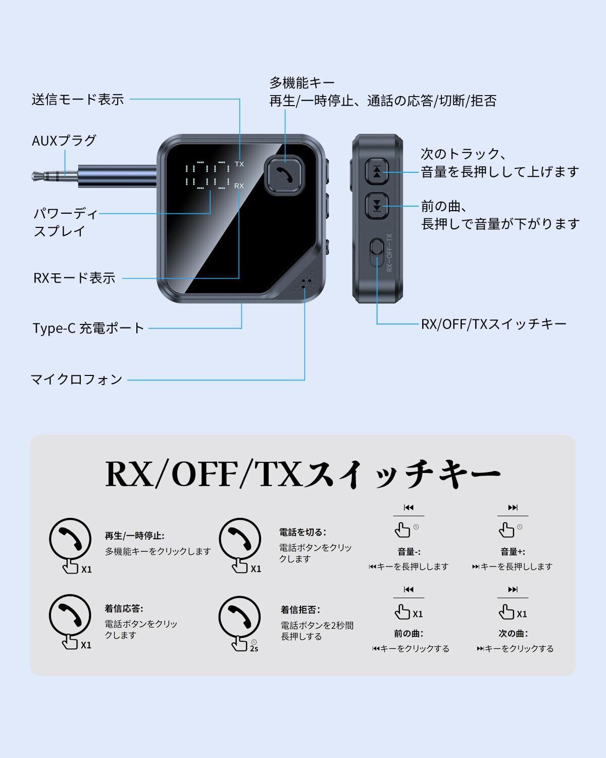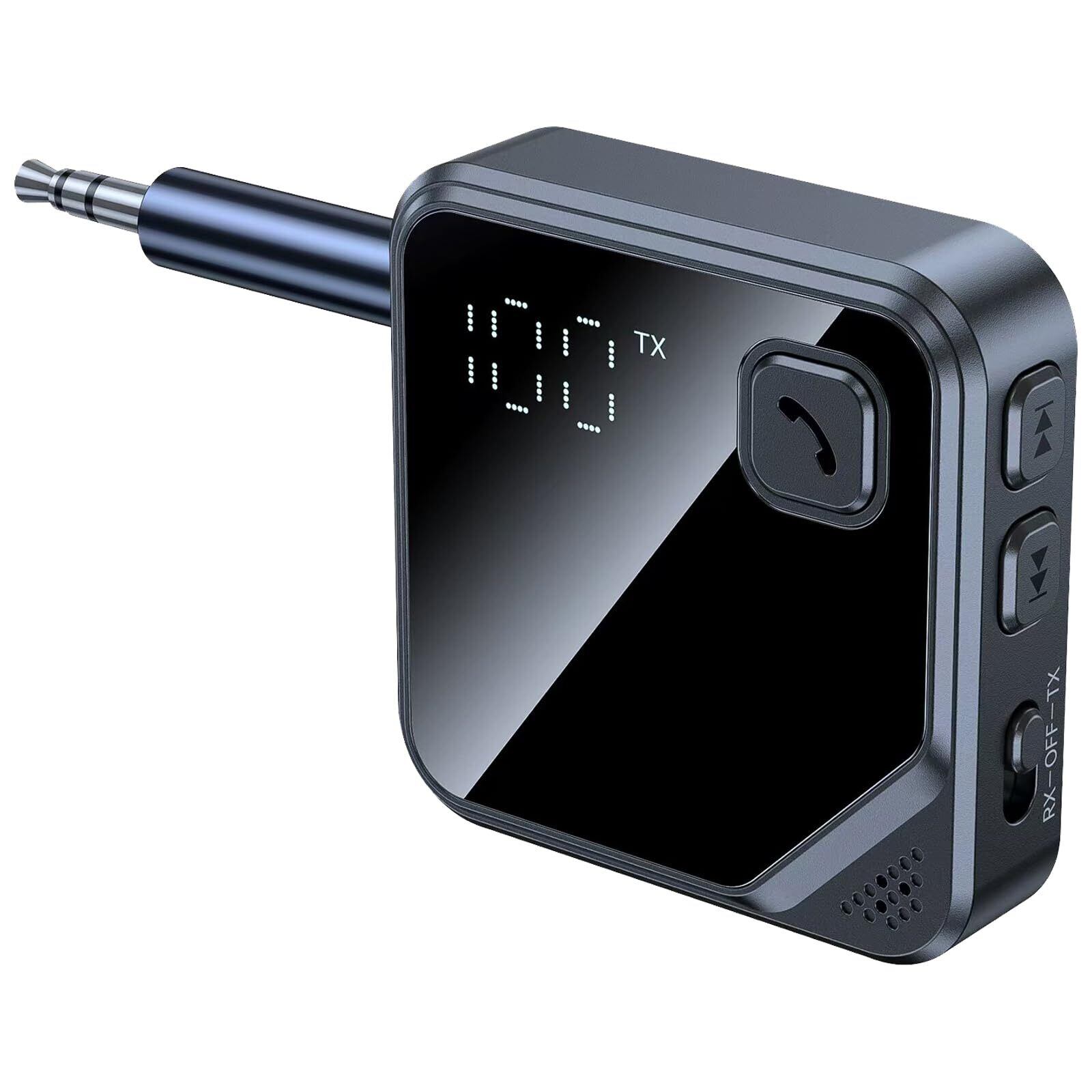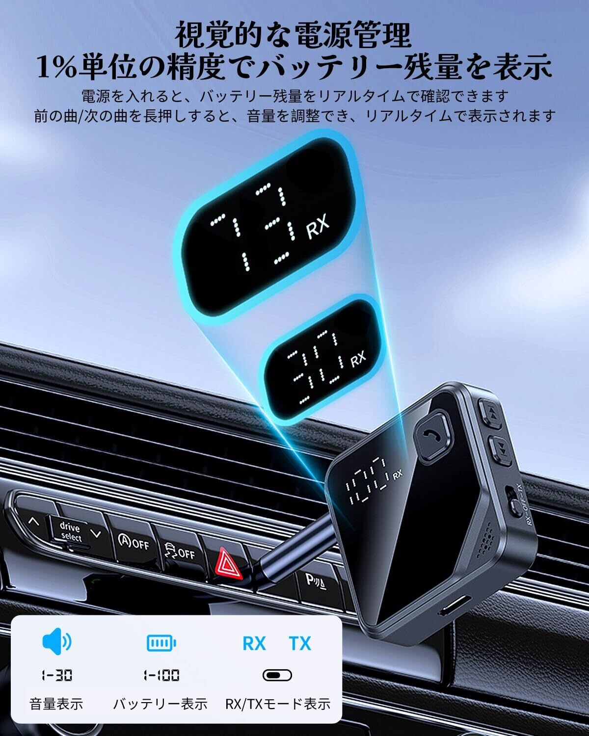 Bluetooth 5.4 トランスミッター & レシーバー 2-in-1 ワイヤレストランスミッター レシーバー bluetoothアダプタ 車載スピーカー/テレビ//PC/ホームスピーカーに適用 Bluetooth 3.5mm Aux オーディオトランスミッター/レシーバー ハンズフリー通話 音楽再生 LEDディスプレイ 小型 送信機 & 受信機
