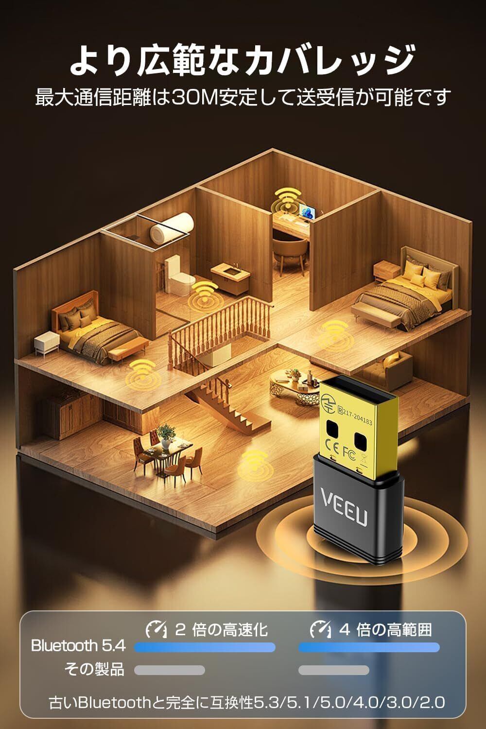 【業界トップクラスBluetooth5.4技術&ドライバー不要】VEEU Bluetoothアダプタ 5.4 Bluetooth USB アダプタ bluetooth レシーバー 超低遅延 小型 簡単な操作 最大通信距離20-30m ブルートゥース アダプタ EDR/LE対応(省電力) aptX対応 Win7/8.1/10/11対応 Mac非対応 、挿し込で即利用 (ブラック)