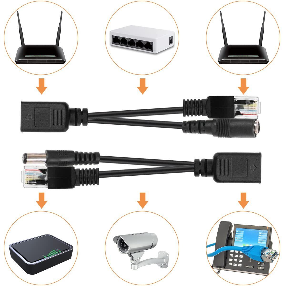 パッシブ イーサネット PoE インジェクター スプリッター RJ45 パワー オーバー イーサネット アダプター、IP セキュリティ カメラ用 5.5x2.1 mm DC プラグ コネクター RJ45、4 ペア | FJ即配ストア