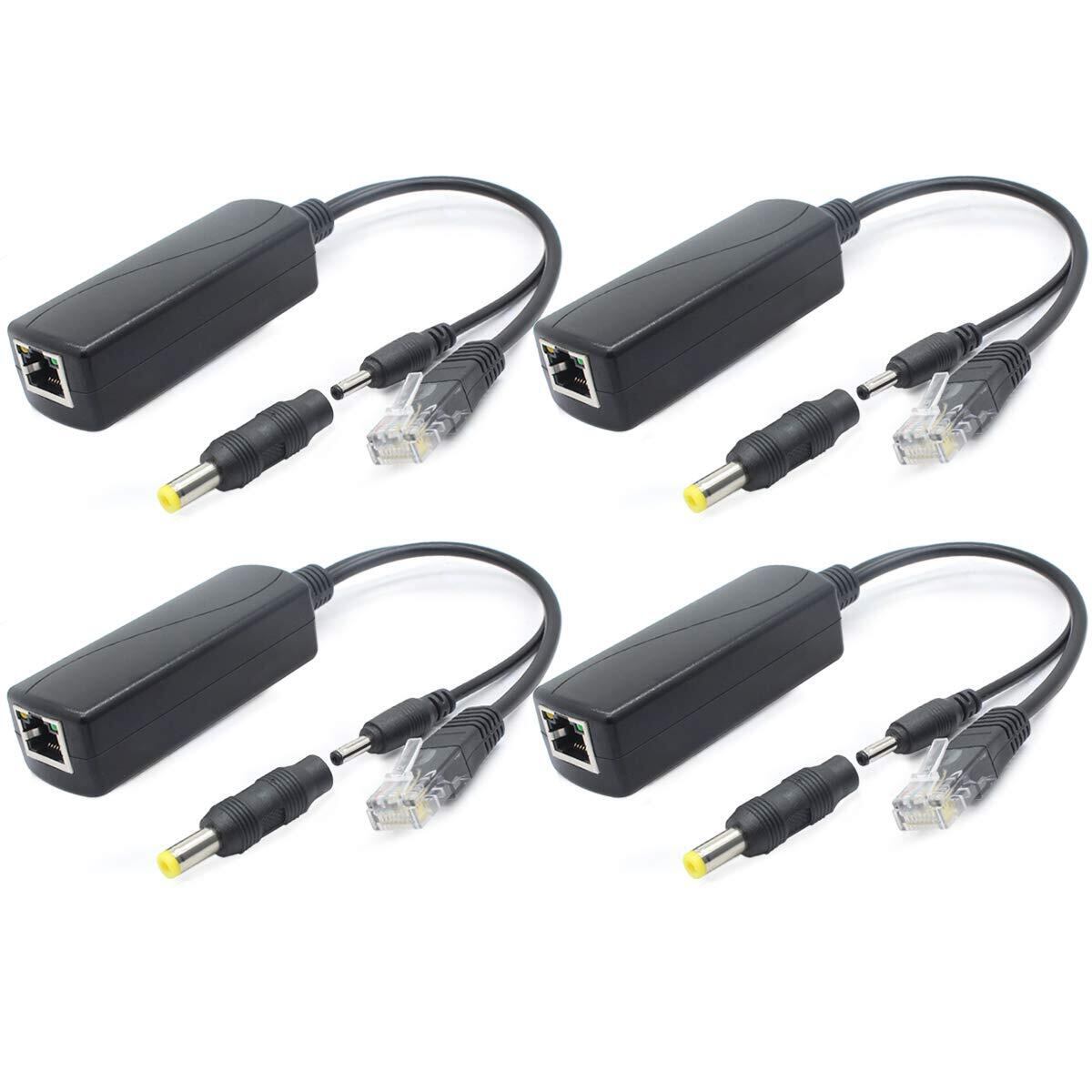 ANVISION 4パック5VギガビットPoEスプリッター、48Vから5V 2.4Aアダプター、プラグ3.5mm x 1.35mm、5.5mm x 2.1mmコネクター、IEEE 802.3af準拠、IPカメラなど