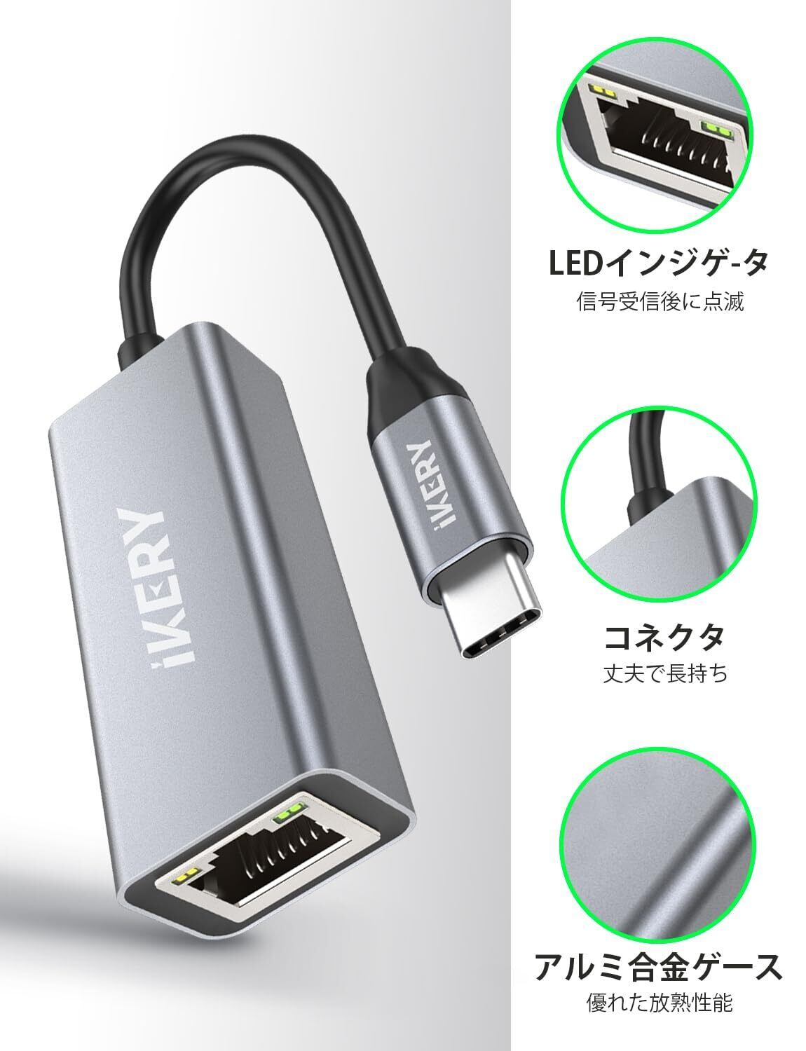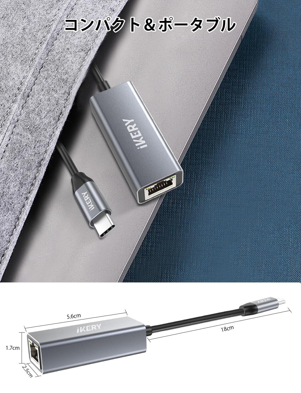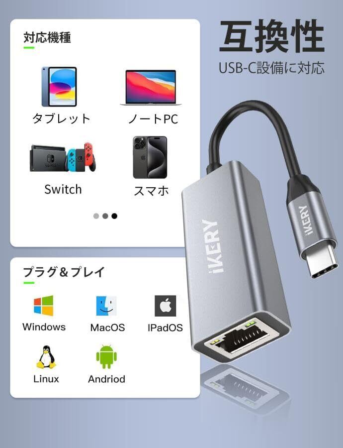 IKERY 有線LANアダプター usb-c イーサネットアダプター Type-C lan 変換アダプタ1000Mbps 高速 RJ45 ギガビットイーサネット LAN ケーブル 変換 MacBook, iPad Pro, iMacなどに対応