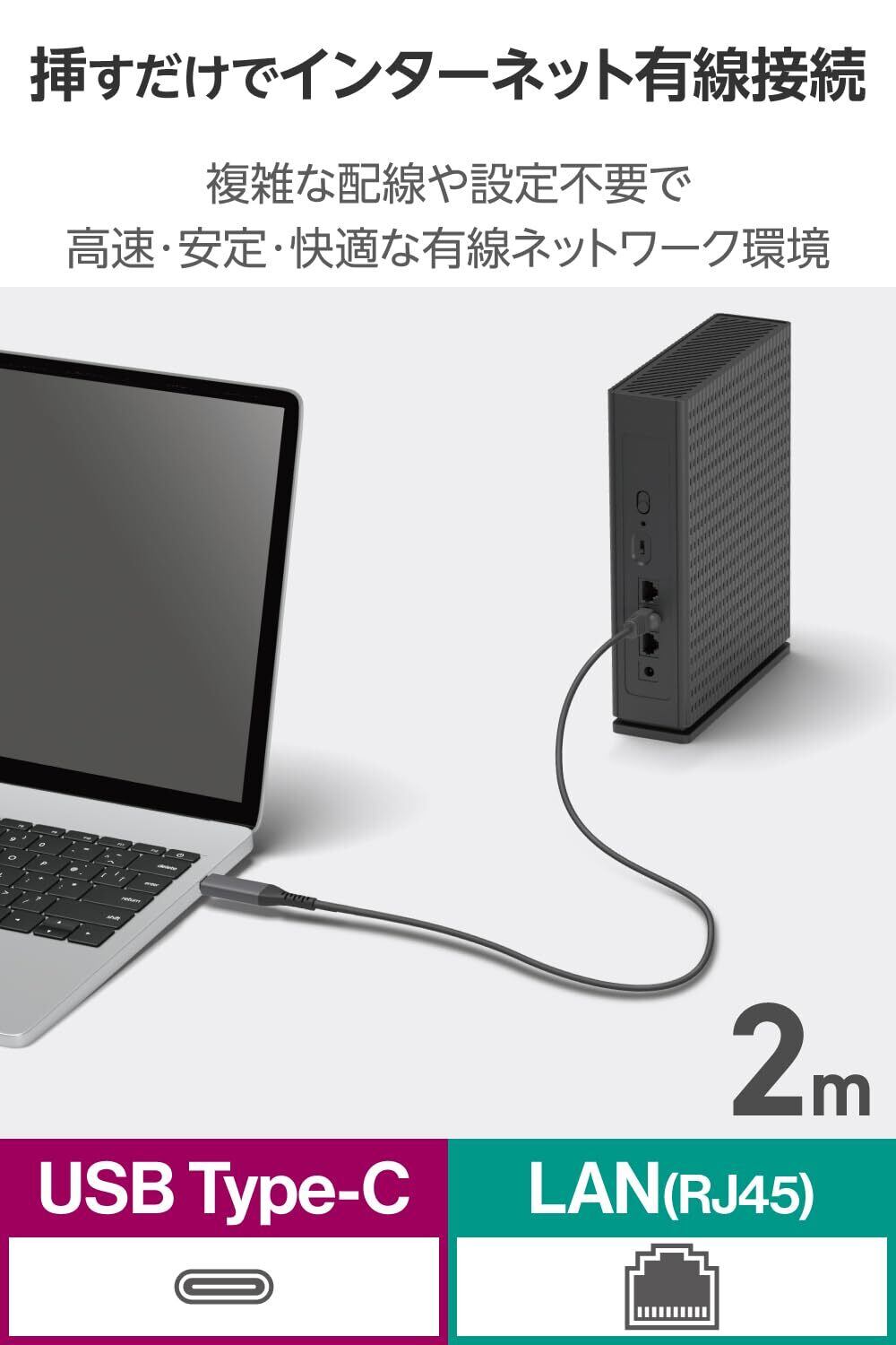 エレコム USB-C to LAN変換ケーブル CAT6 MACアドレスチェンジャー 2m ブラック ECLD-CL1G20BK