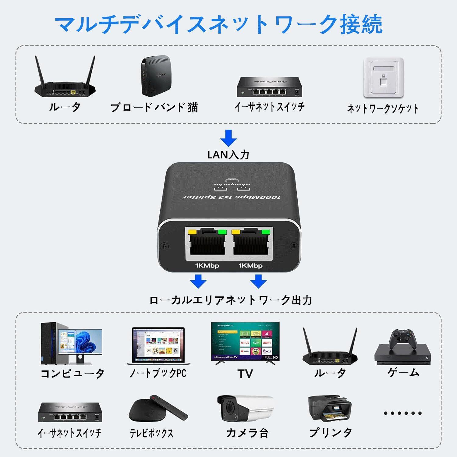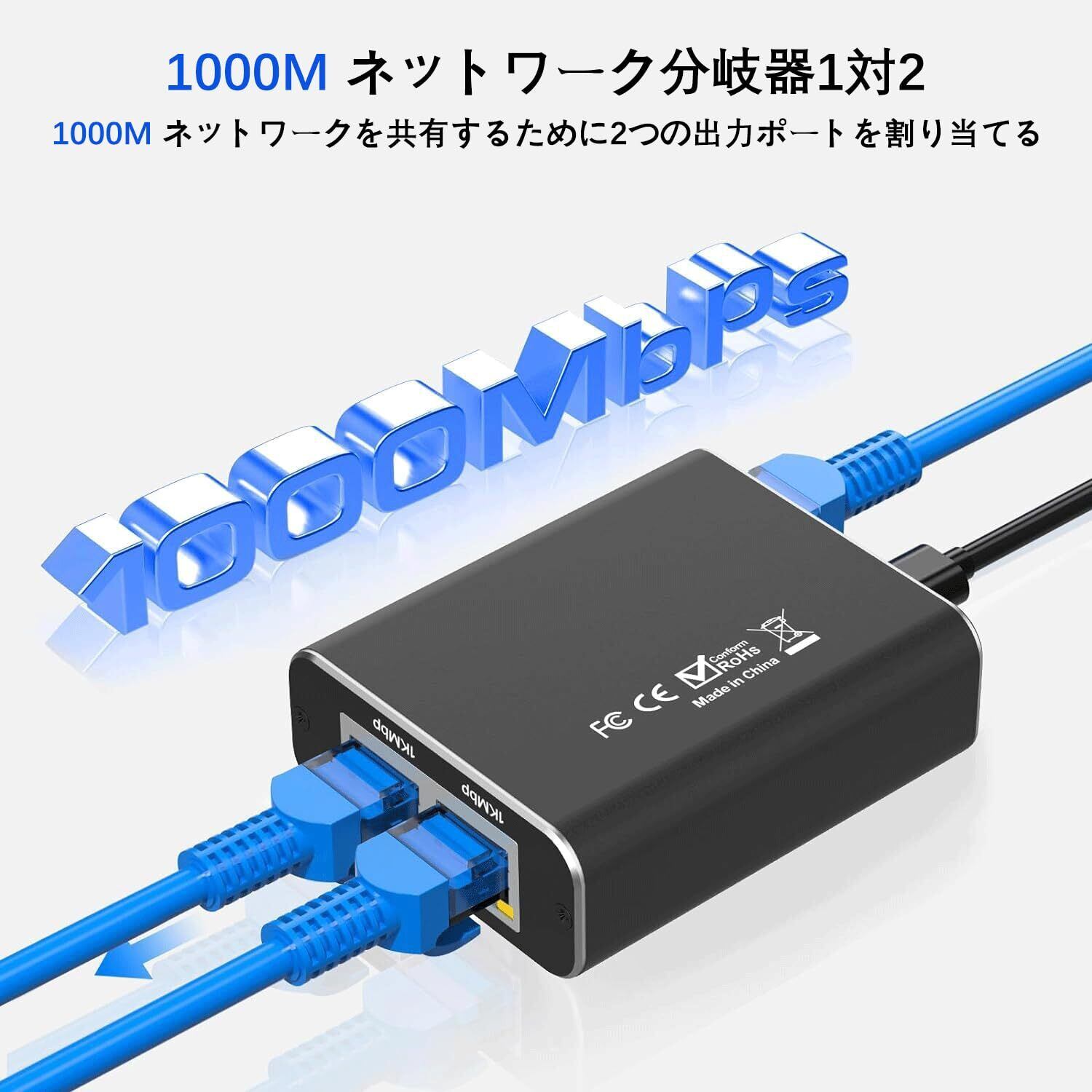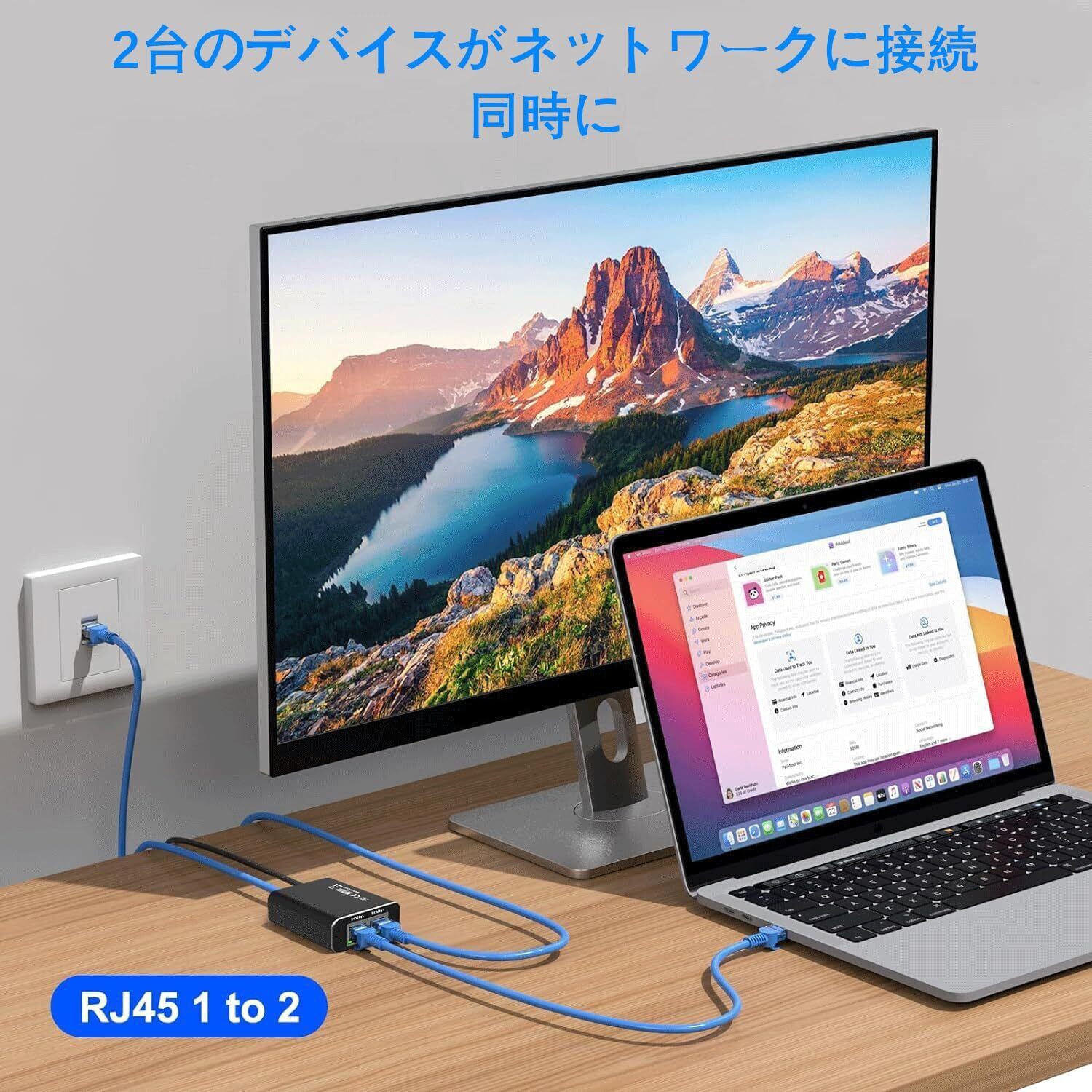 LAN 分配器 LAN ケーブル 分岐 RJ45 1000Mbps 1入力2出力 2台同時使用 USB Type-C電源ケーブル付き Cat5 Cat5e Cat6 Cat7 Cat8対応 ネットワーク拡張 ネットワーク同時利用 二股同時出力 PS5/PS4対応 データー伝送 2画面PC