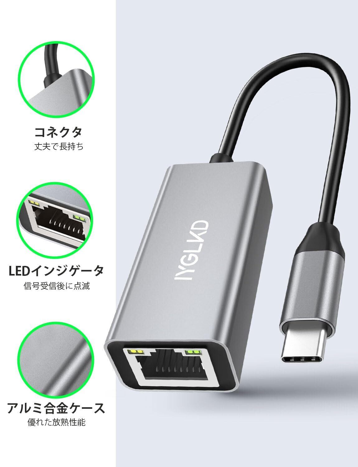 USB-C LAN 有線LANアダプター 1000Mbps 高速 Type-C to RJ45 ギガビットイーサネット lan usb 変換アダプタ Switch MacBook iPad Pro iMacなどに対応 軽量 コンパクト