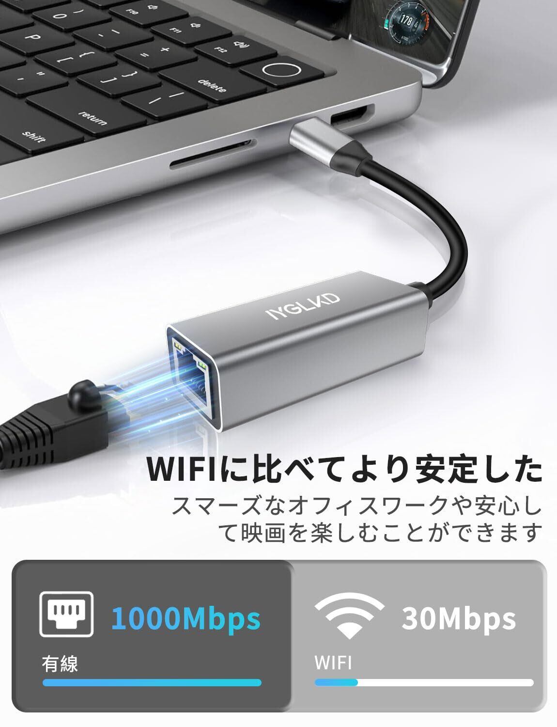 【USB-C to RJ45 有線LANアダプター】Type C to RJ45有線LANアダプターは、WiFi信号よりも安定した通信環境を提供。快適なネットワークオフィス作業、没入感あふれる動画視聴、そしてスムーズなゲーム体験を実現します。