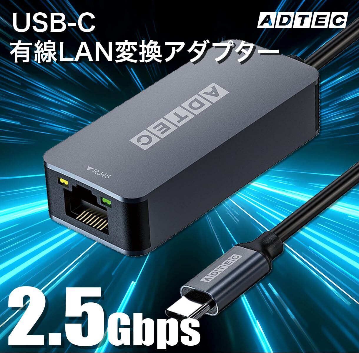 アドテック 2.5Gbps Type-C to RJ45 高速イーサーネットアダプタ LAN Macbook Pro Surface Pro Dell HP Linux USB3.1 USB3.2 Gen1 AUCL-V025G-U31
