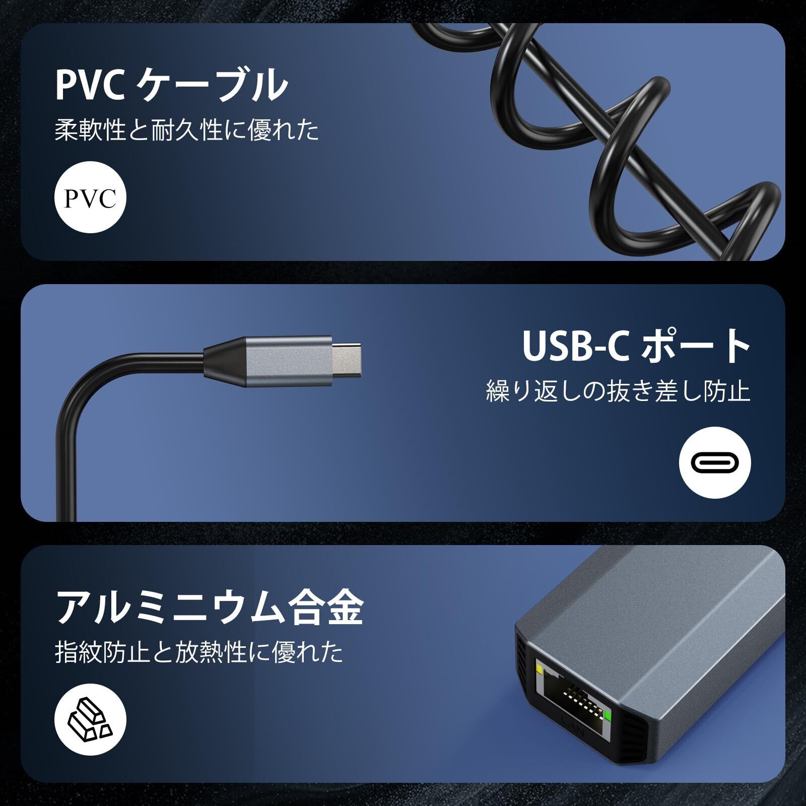 Minthouz USB-C LAN 有線LANアダプター 5000Mbps高速 Type-C LAN USB LAN 変換アダプター 5gbps wifi usb アダプター USB type C to RJ45 ネットワーク接続5G、2.5G、1G、100Mbps 転送速度最大5Gbps Linuxカーネル6.10以降/MacBook/Windowsに対応