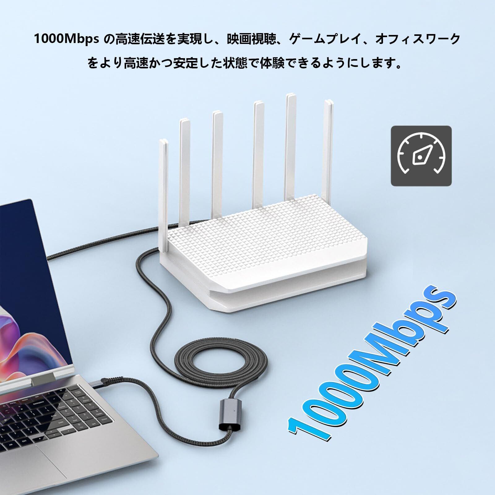 USB-C からイーサネットへのアダプター、ギガビット LAN、1000Mbps の転送速度|Type-C から RJ45 への有線 LAN 変換、コンパクトなデザイン|プラグ&プレイで、ドライバ不要|MacBook/iPad Pro/Windows/Surface Pro に対応(長さ 1.2m)