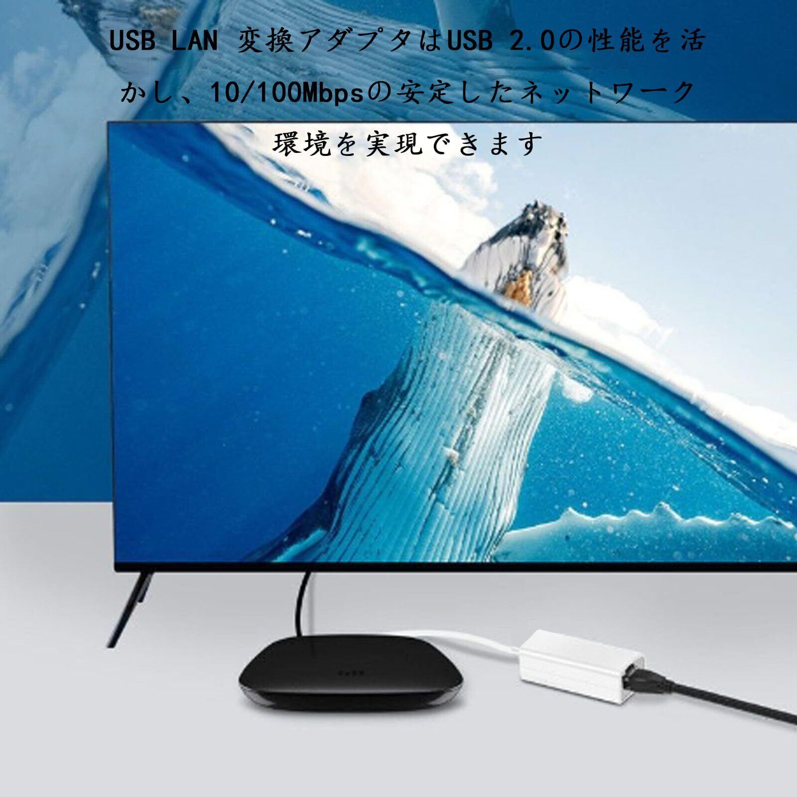 【イーサネット】USB LAN 変換アダプタはUSB 2.0の性能を活かし、10/100 Mbpsの安定したネットワーク環境を実現できます。ファイル転送、ビデオ会議、オンラインゲームなどに最適です。