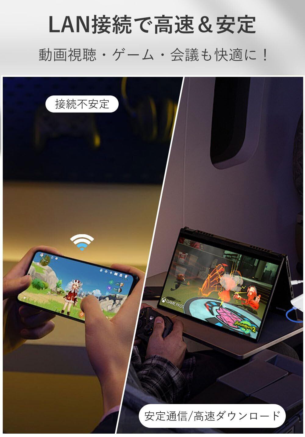 【安定・高速なイーサネット接続】LANポートはGigabit Ethernet(10/100Mbps)対応で、無線よりも安定したネットワーク接続を実現。lan usb 変換アダプタとして、ライブ配信・ゲーム・ビデオ会議・クラウドファイル作業に最適。遅延なく安定通信できるイーサネットアダプタです。