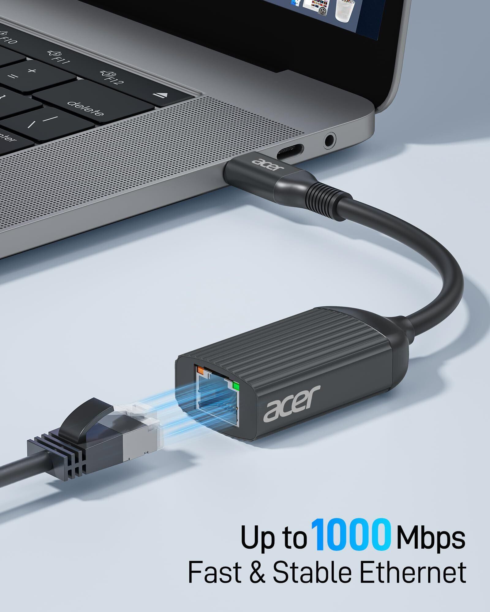 Acer USB C有線LANアダプター、1000Mbps高速 USB-C to RJ45 ギガビットイーサネット,RJ 45USB LAN変換アダプター (Thunderbolt 3/4対応)、iPhone 15/16、、MacBook Pro/Air、Dell XPS、Galaxy S 23などに対応 (ブラック)