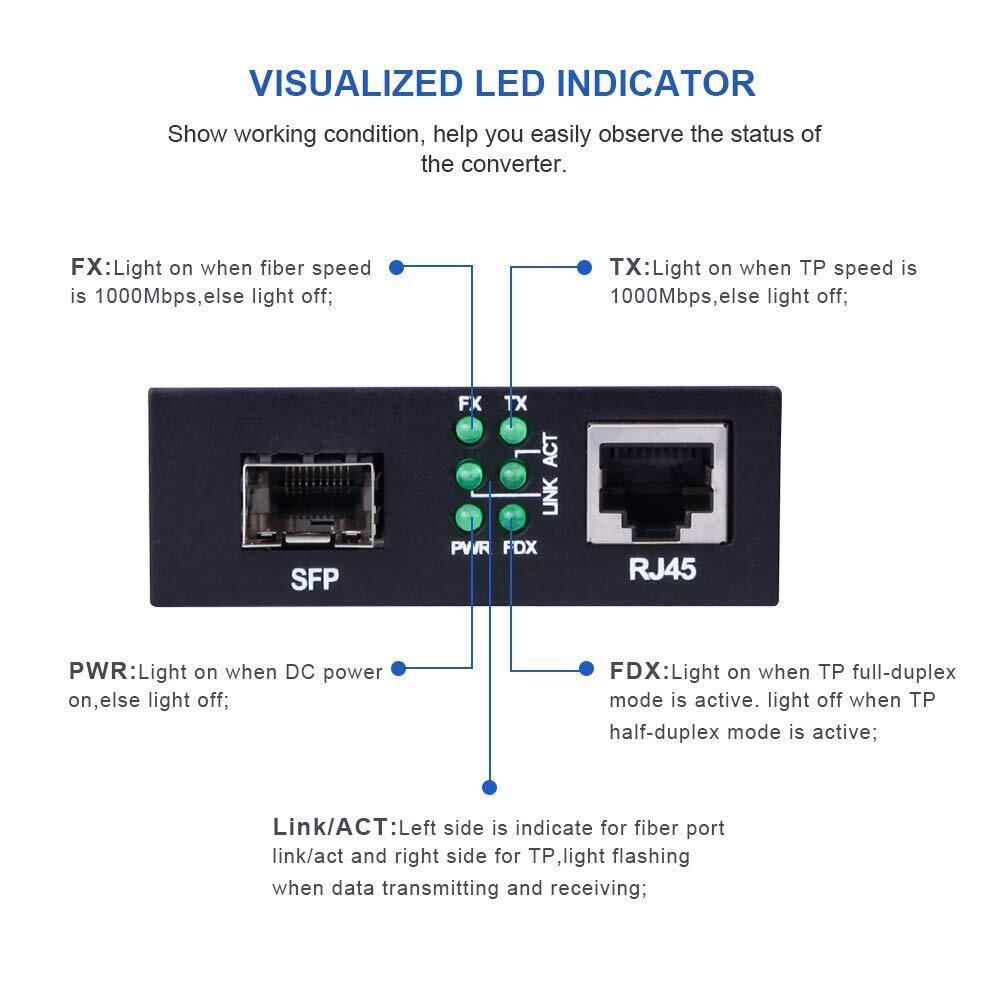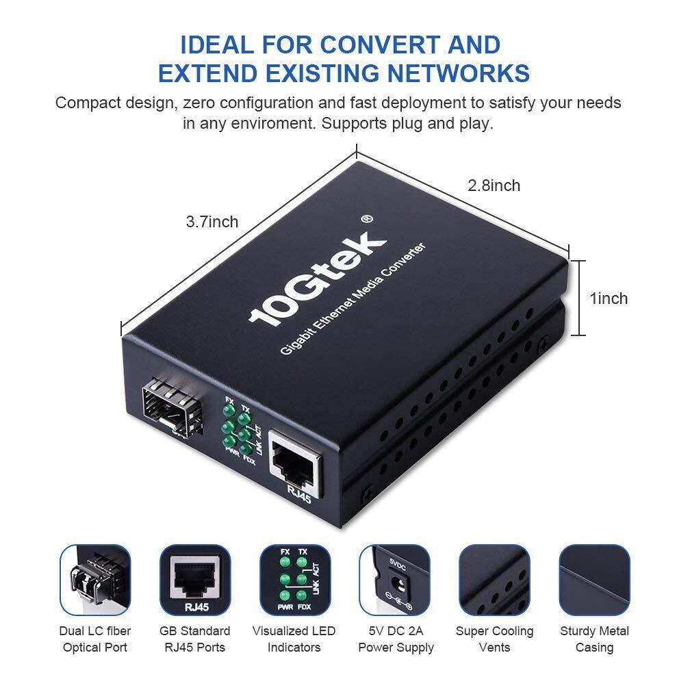 10Gtek ギガビット 光メディアコンバーター マルチモード デュアルLCファイバー 1.25Gb/s SFPモジュール to 10/100/1000Base-Tx 1000Base-SX SFP 付き (850nm 550m)