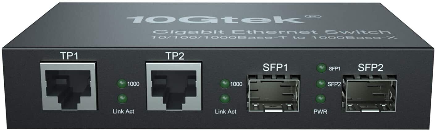 10Gtek ギガビット 光メディアコンバーター 1.25Gb/s 2xSFPポートto 2x10/100/1000Base-Tx