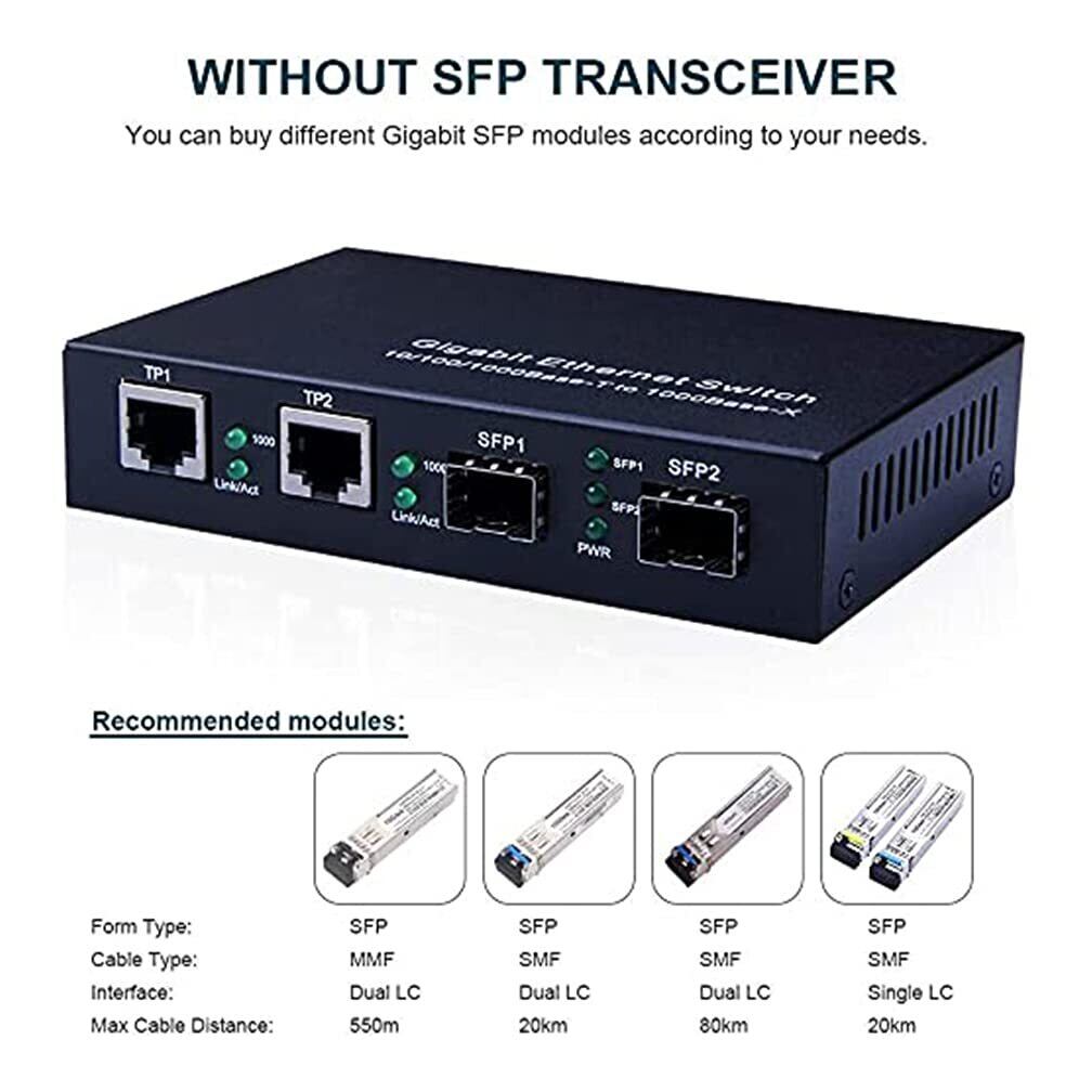【SFPモジュールなし】この4ポートメディアコンバーターにはSFPモジュールは含まれていません。10Gtekブランドを含む、ほとんどの互換性のあるシングルモードおよびマルチモードのSFPモジュールを受け入れます。お必要に応じてそれを配備することができます。
