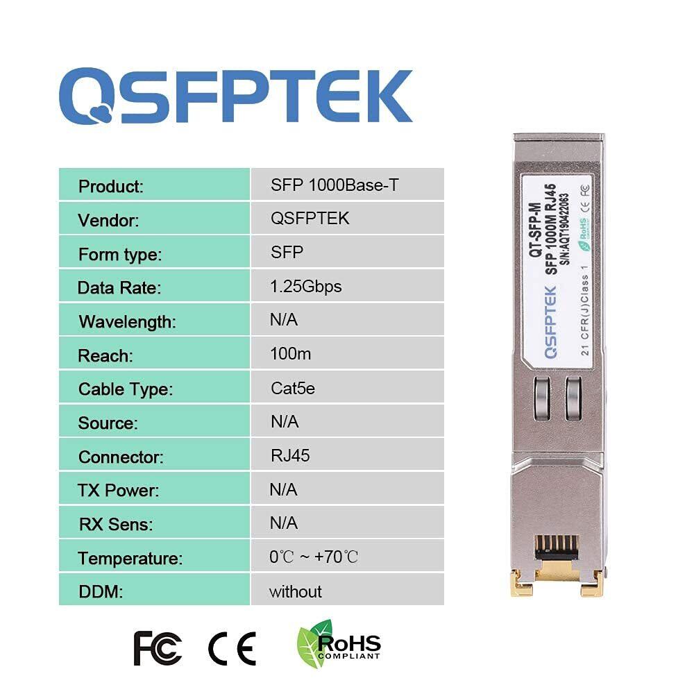 QSFPTEK SFP RJ45 Copper Module Gigabit Transceiver 1000BASE-T for Cisco GLC-T/GLC-TE/SFP-GE-T, Ubiquiti UF-RJ45-1G, Netgear, other Open Switches, Reach 100m