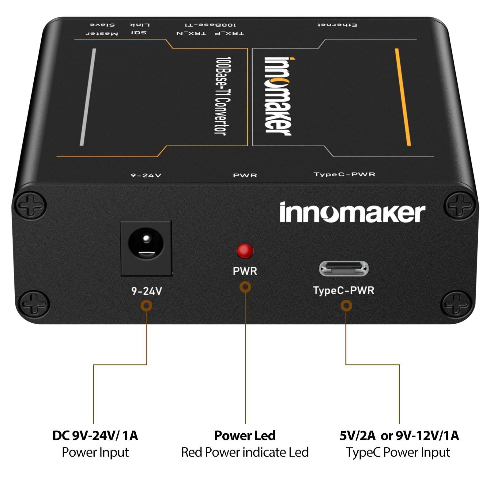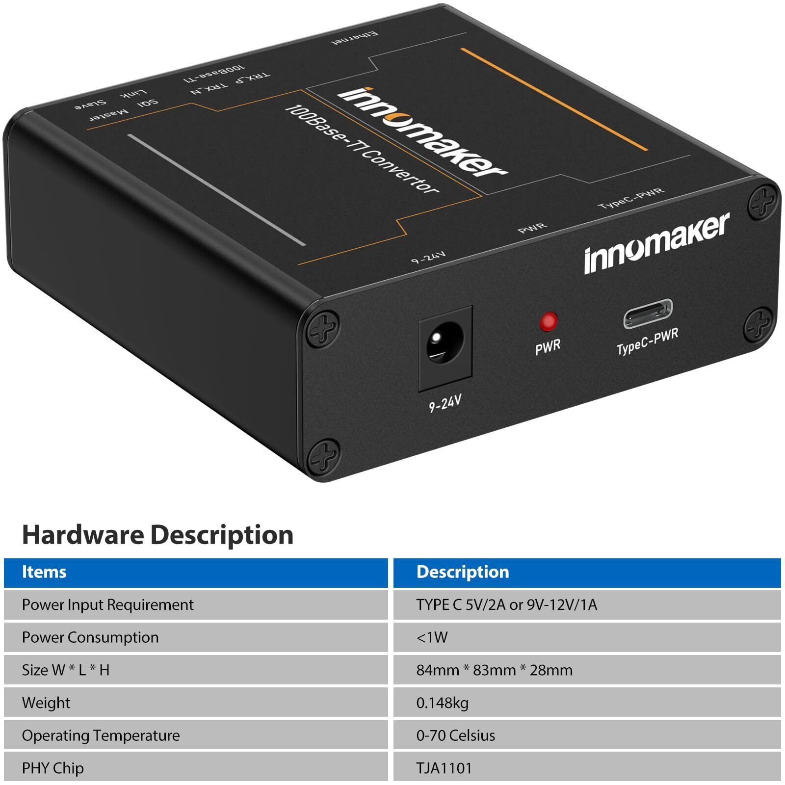 InnoMaker 車載イーサネットコンバーター - 100BASE-T1 から 100BASE-TX メディアコンバーター | IEEE 802.3 準拠 | 100Mbps 全二重通信 | 2線式イーサネット | 車載ネットワーク装置