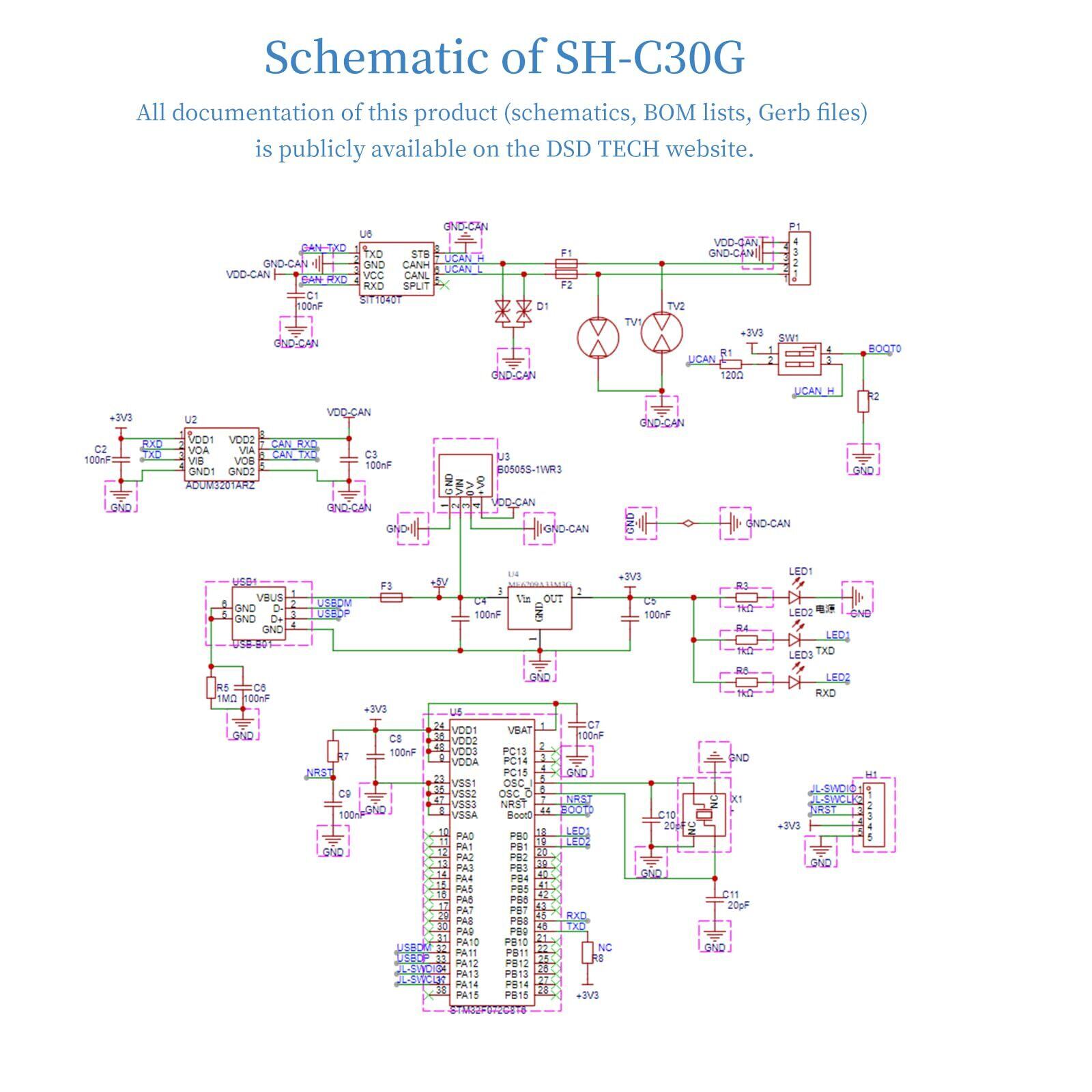 オープンソースハードウェア計画: SH-C30Gは、オープンソースハードウェアプロジェクトCanableから派生したものです。DSD TECHは良質なハードウェアメーカーとして、オープンソースハードウェアの開発に少しでも貢献したいと考えています。この製品のすべてのドキュメント(回路図、BOMリスト、Gerbファイル)はDSD TECHのウェブサイトで公開されています。