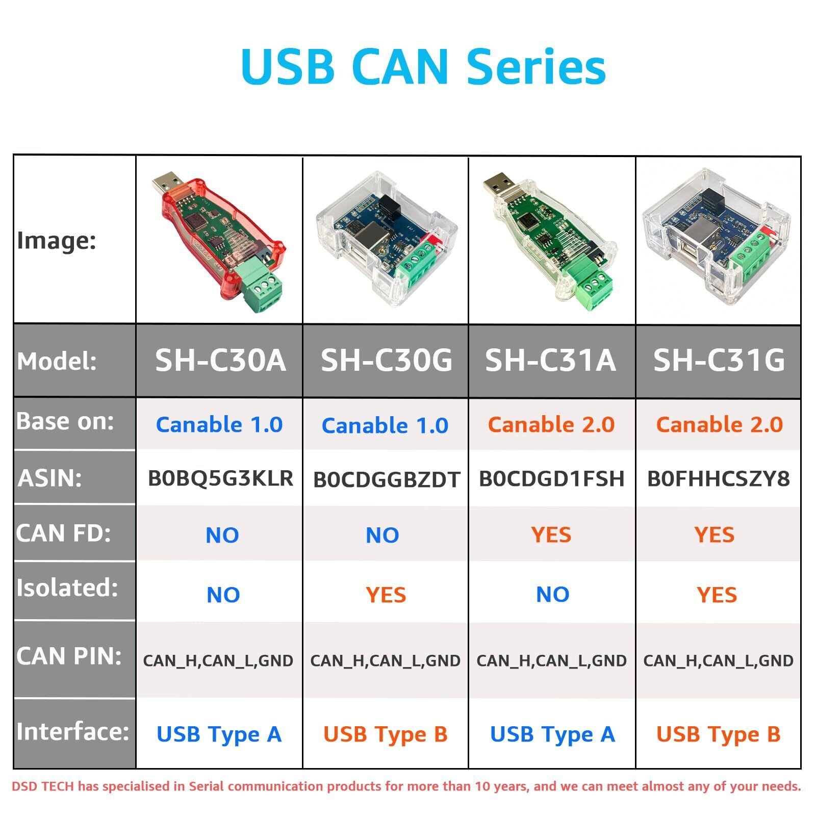 DSD TECH SH-C30G Canable 1.0 Pro ベースの絶縁型 USB-CAN アダプター