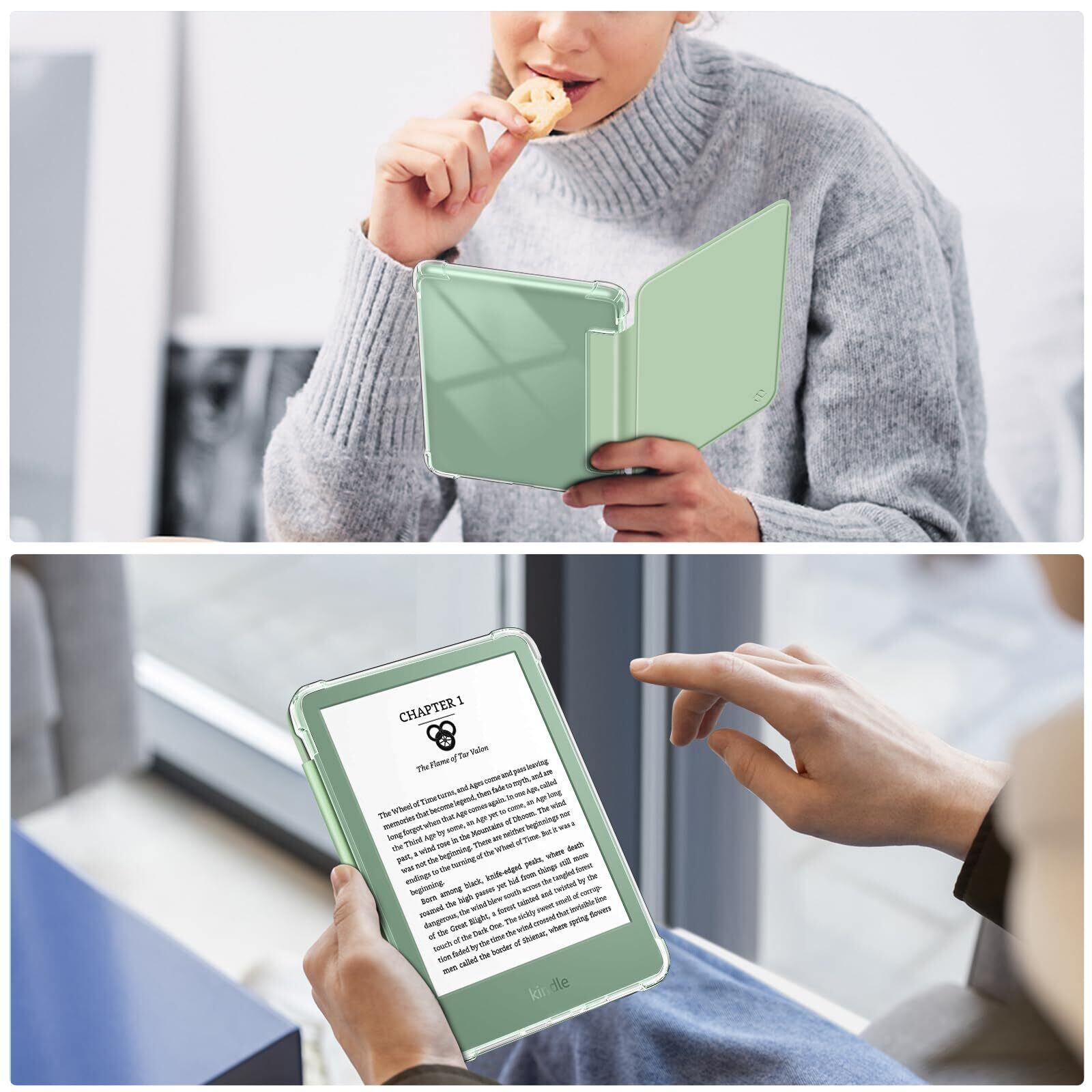 Fintie for Kindle 第11世代 クリアケース 2024/2022年発売 Newモデル 6インチ用ケース 保護カバー 透明バックカバー 軽量 薄型 オートスリープ機能付き(グリーン)