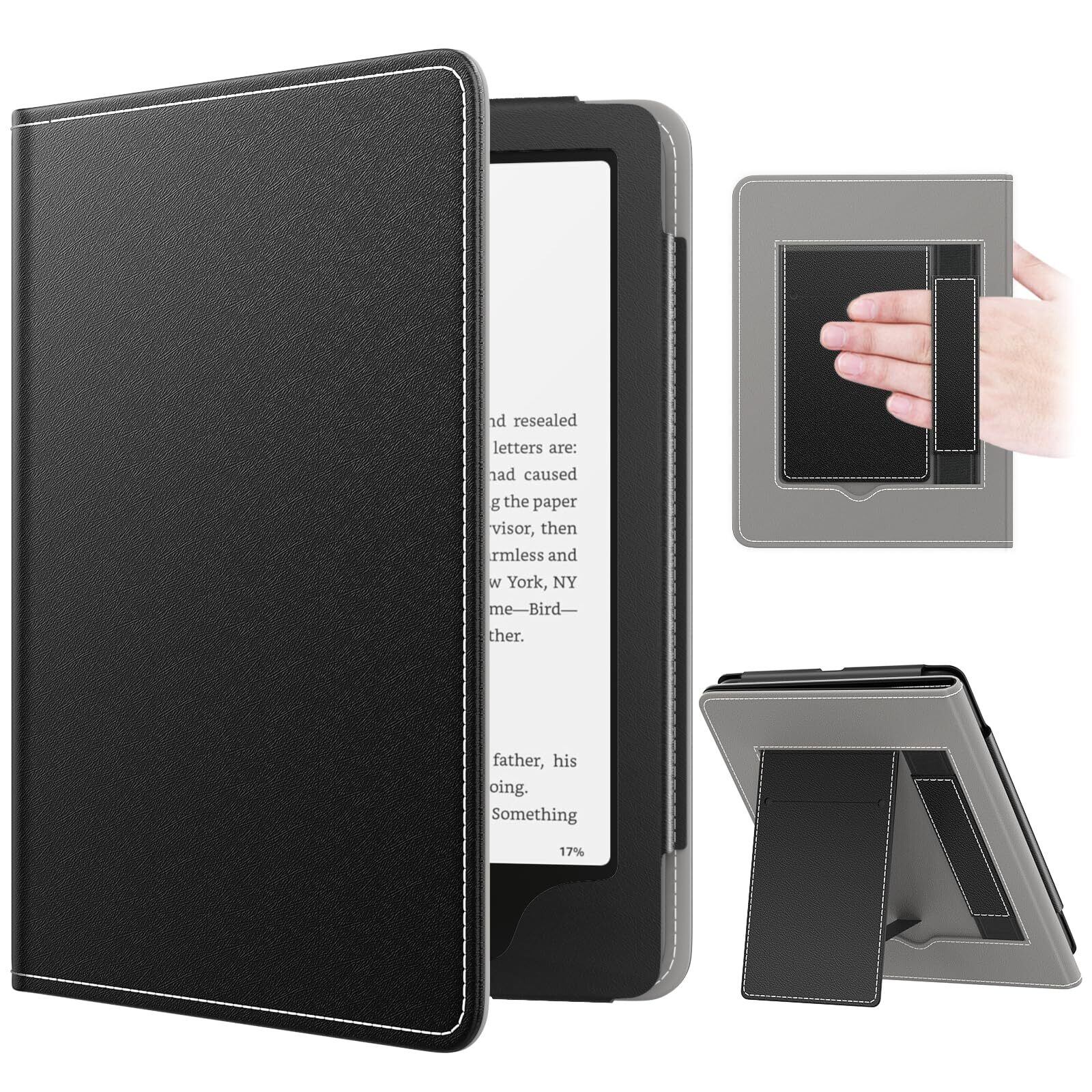 MoKo Kindle Paperwhite 2024/2021 カバー 第12/11世代 7/6.8インチ専用保護カバー Kindle Colorsoft 第1世代 2025 7インチ用全面保護ケース キンドルペーパーホワイト スタンドケース 手ホルダー付き 軽量 薄型 傷防止 手帳型 Black