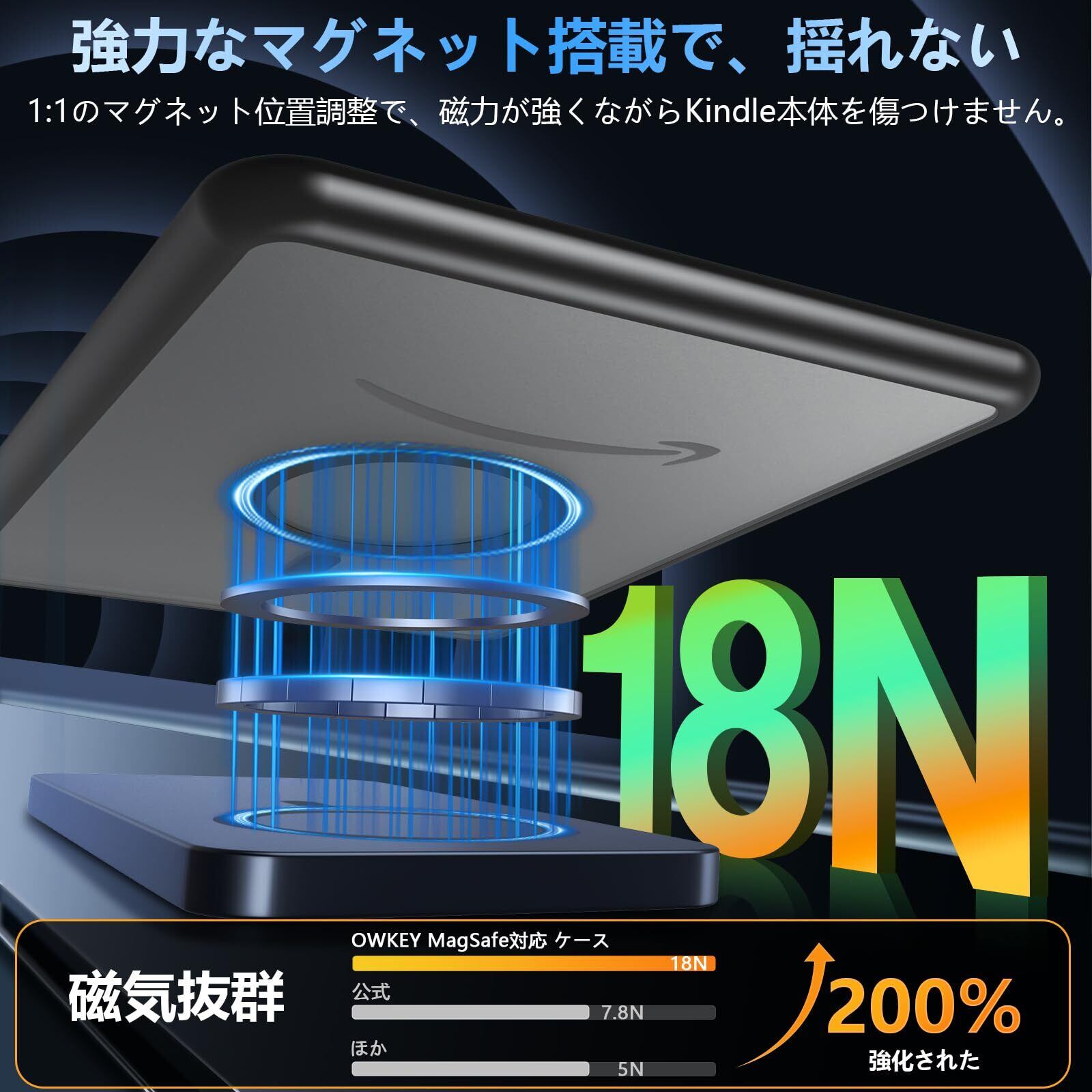 【MagSafe対応・より便利】最新型の強力なマグネット搭載で差し込みのいらない超簡単充電を実現し、吸着力、安定性に優れ、いつでもどこでもワイヤレス高速充電を体験できます。このモデル(Kindle Paperwhite シグニチャーエディション)のみワイヤレス充電自体に対応していますが、他の2つのモデルは非対応です。全モデルマグネットスタンド機能に対応しています。また、MagSafeバッテリー、MagSafeカードケース、MagSafeワイヤレス充電器、MagSafeリング、MagSafe車載ホルダーなど、MagSafeを使用するシーンに対応した kindle ケース なので、Magsafeの便利さを満喫しましょう!
