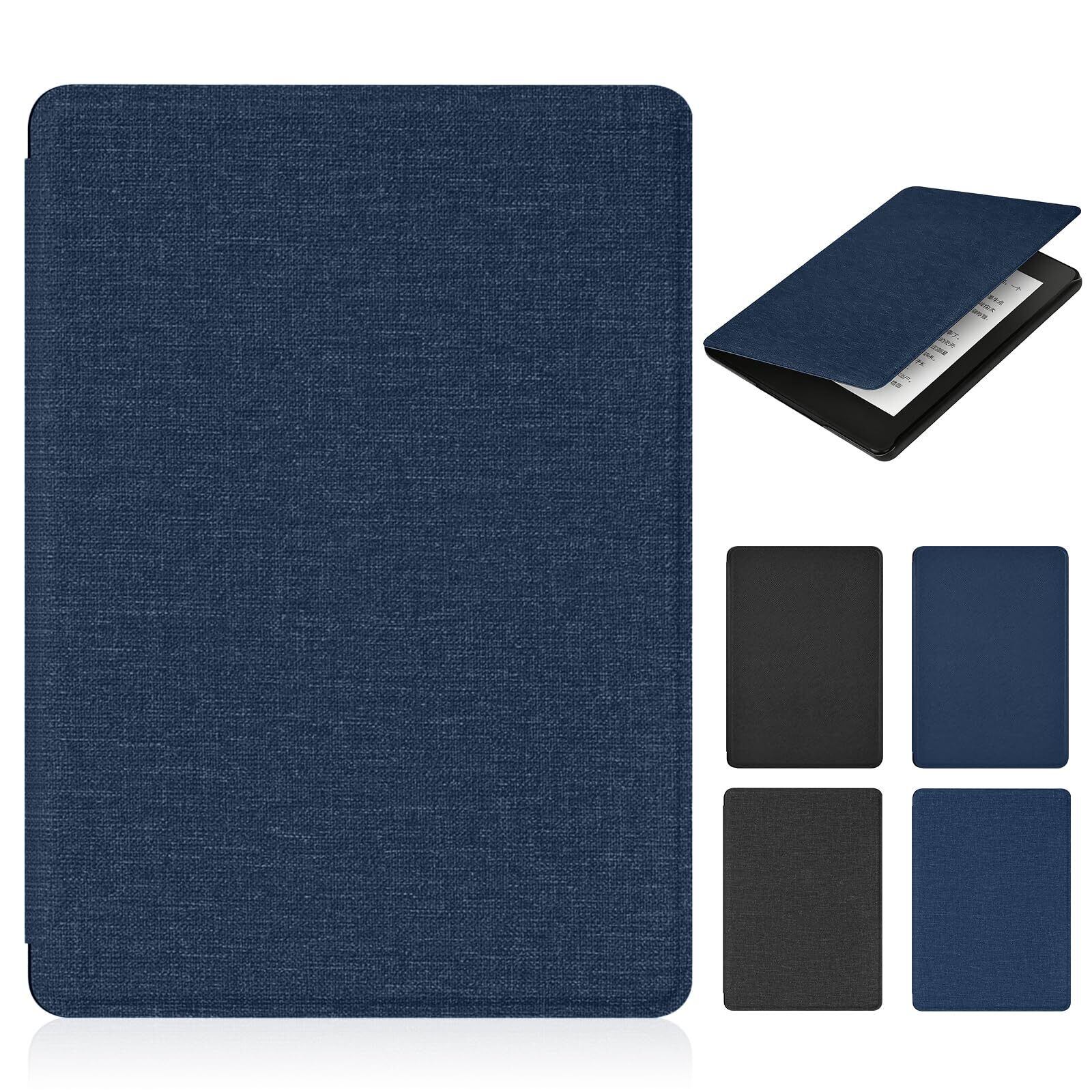 For New Kindle Paperwhite 第12世代 7インチ/Kindle Colorsoft ケース 高級PU レザー カバー オートウェイク/スリープ機能 磁気吸着 電子書籍保護カバー 自動スリープ解除機能付きスマートカバー付き保護套 全面保護 耐衝撃 キンドル ペーパーホワイト シグニチャーエディション(ダークブルー)