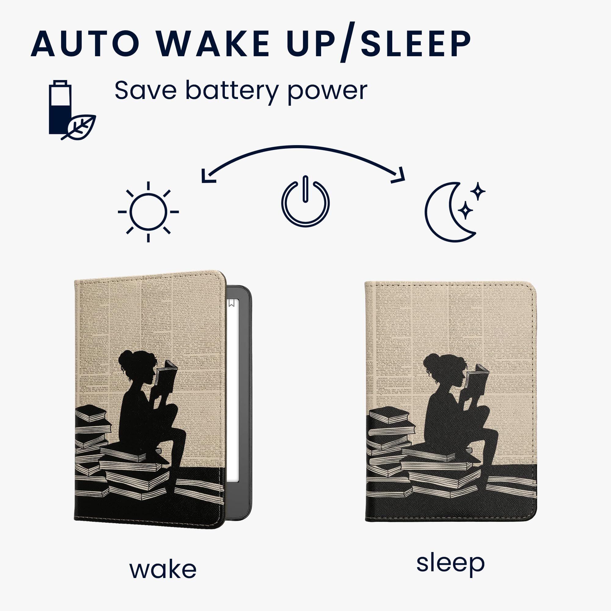 kwmobile カバー Kindle (2022/2024)対応 ケース - 電子書籍リーダー 手帳型 耐衝撃 PUレザー 本と女の子デザイン