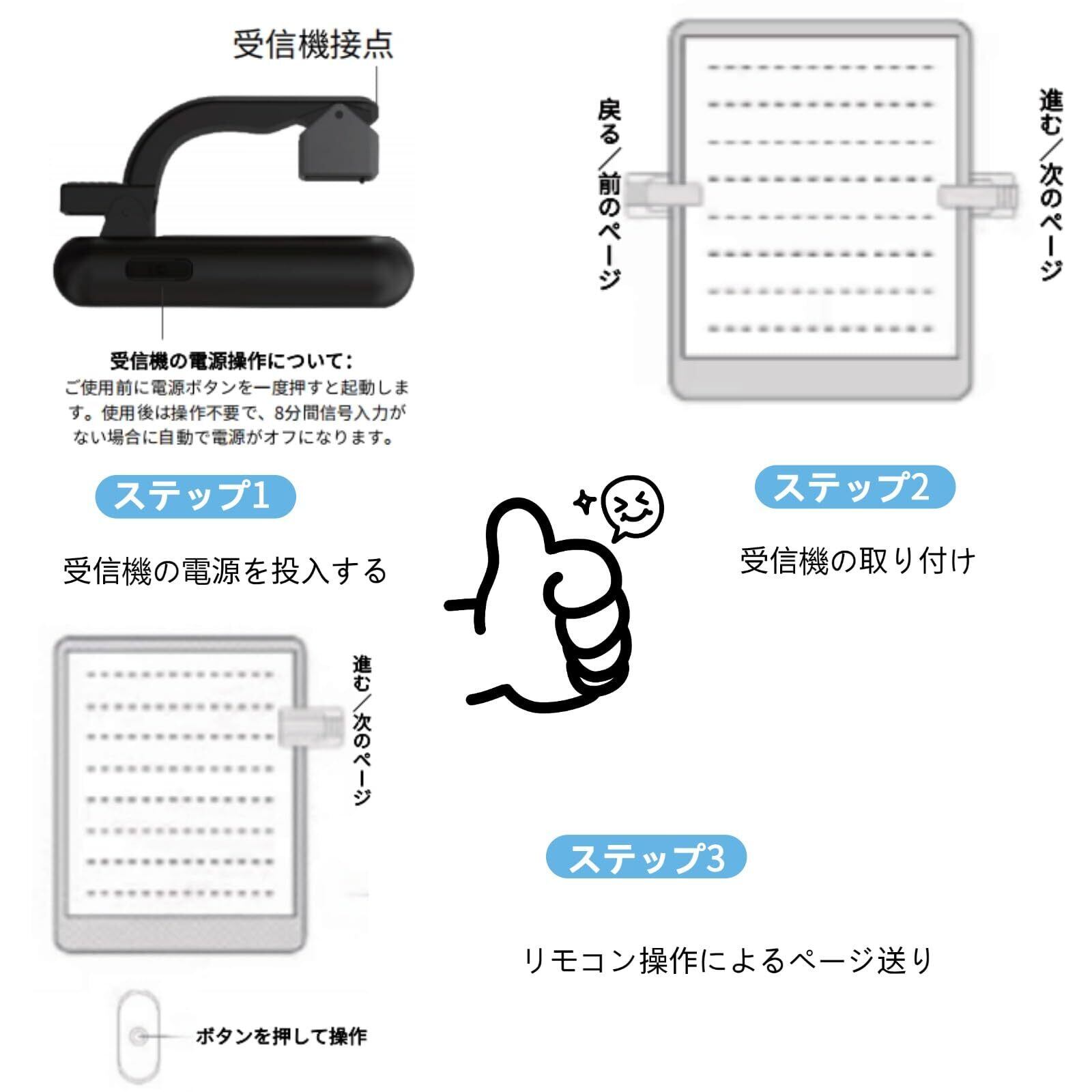 【便利な設計】 リモコンにはサイレントボタン(ミュート機能)付き。音も全然うるさくないので.外出先でも問题なく使えます。おやすみ中のご家族やパートナーのそばで読書しても、静かなページめくりで、周りを気にせずに楽しめます。