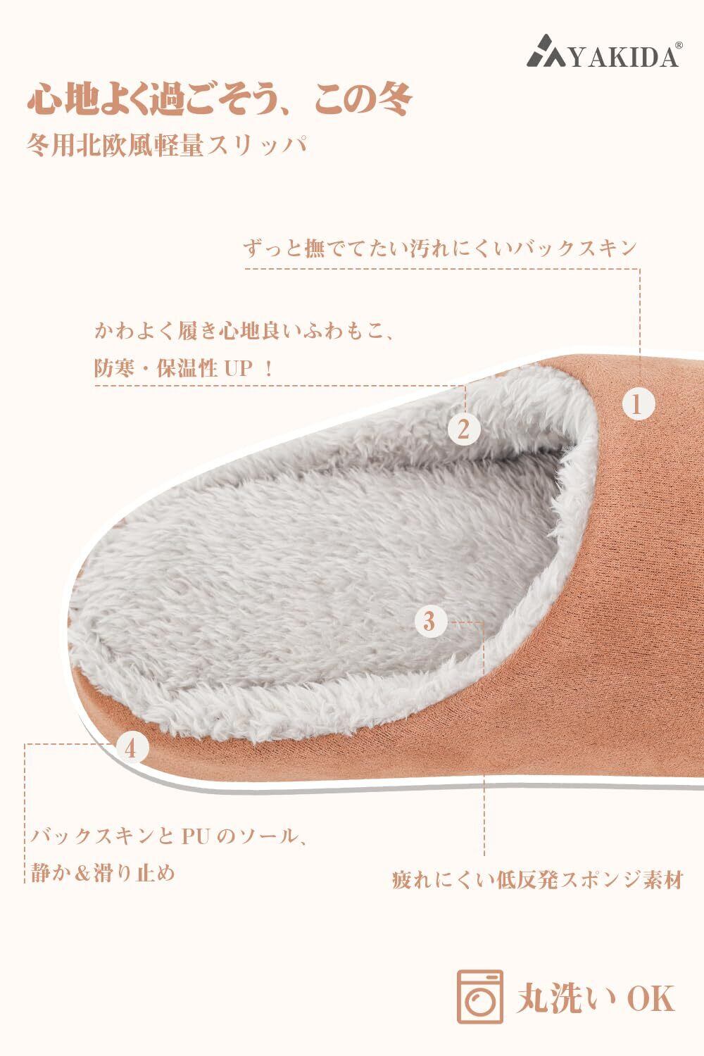 [YAKIDA] ルームシューズ もこもこ 冬用 スリッパ 室内 来客用 防寒 暖かい 洗える メンズ レディース 北欧 滑り止め 静音 人間工学 厚い 秋 男女兼用 軽量 低反発