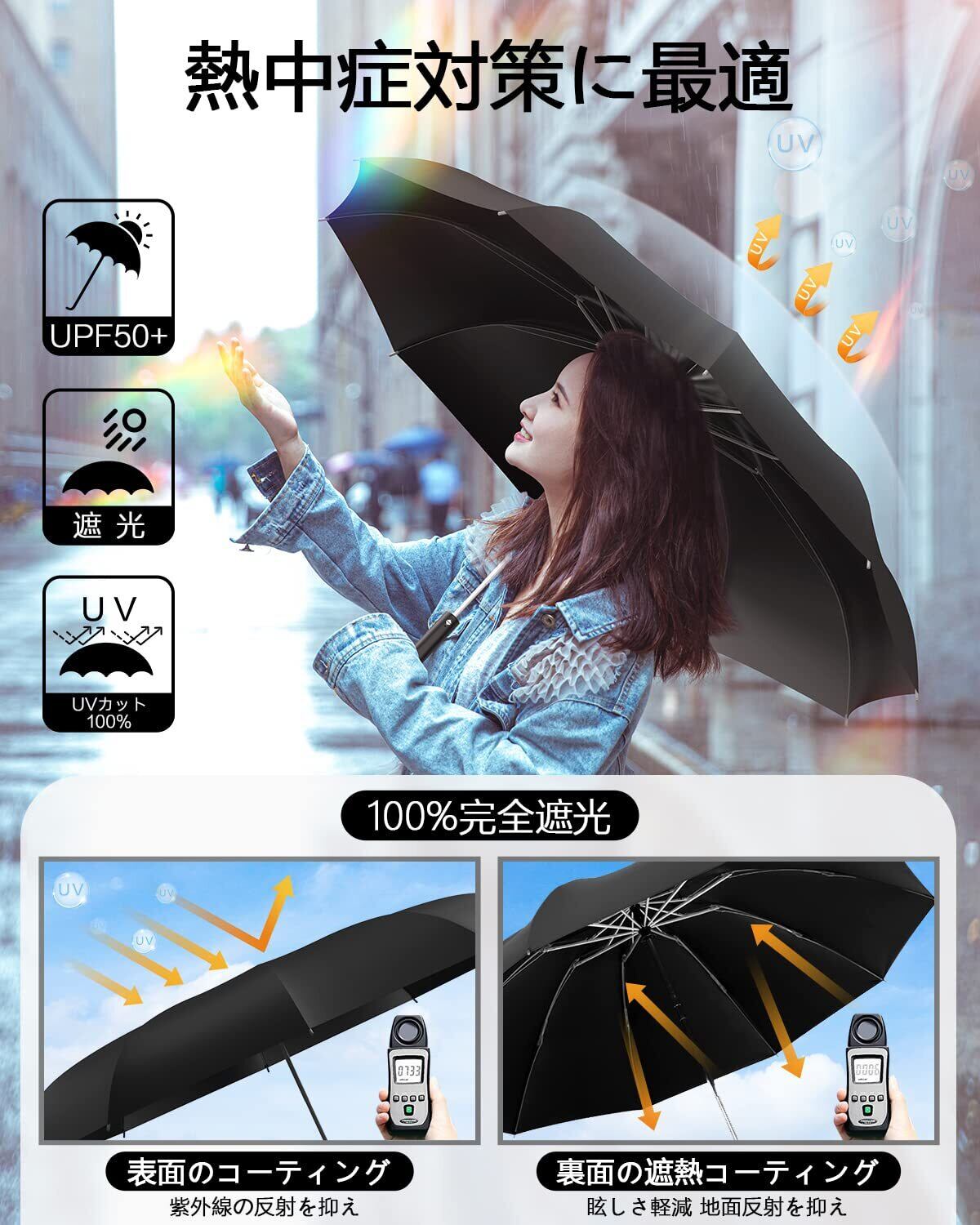 【10本骨強化型&強風耐久性】新作晴雨兼用傘が遂に登場しました!これは男性の要望に応えた究極のメンズ傘です。柔軟性と強度を兼ね備えた10本骨を採用し、通常の8本骨を持つ傘と比較して、風に対する耐性と耐久性が向上しています。さらに、錆びにくい防食加工が施された傘のフレームは非常に頑丈で、強風や激しい雨にも耐えることができ、折れたり曲がったりしにくい設計です。