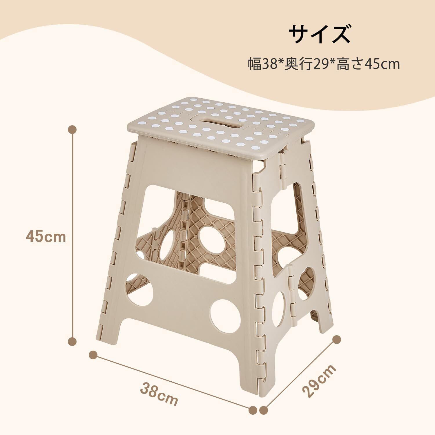 【サイズ】[使用時] (約)幅38*奥行29*高さ45cm。【材質】[本体] ポリプロピレン、[滑り止め] 合成ゴム。 ※踏み台、ステップ 、スツール、脚立、椅子 、チェア、スタンドに。