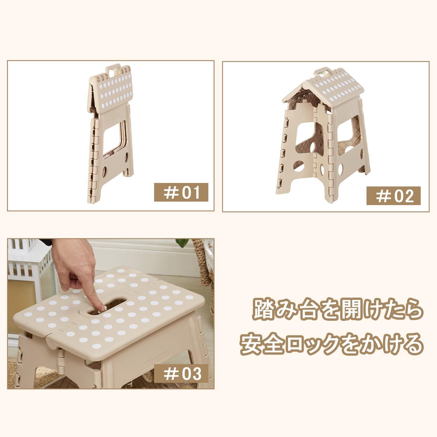 VECELO 踏み台 折りたたみ椅子 【2024新登場・安全ロック設計】 ステップ 脚立 幅38*奥行29*高さ45cm カーキ フォールディング スツール チェア コンパクト アウトドア/室内 収納便利
