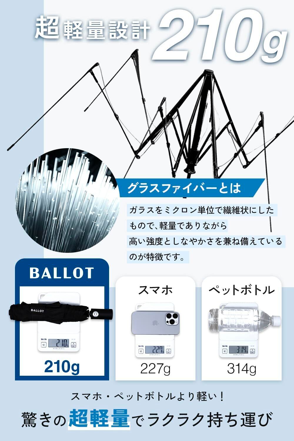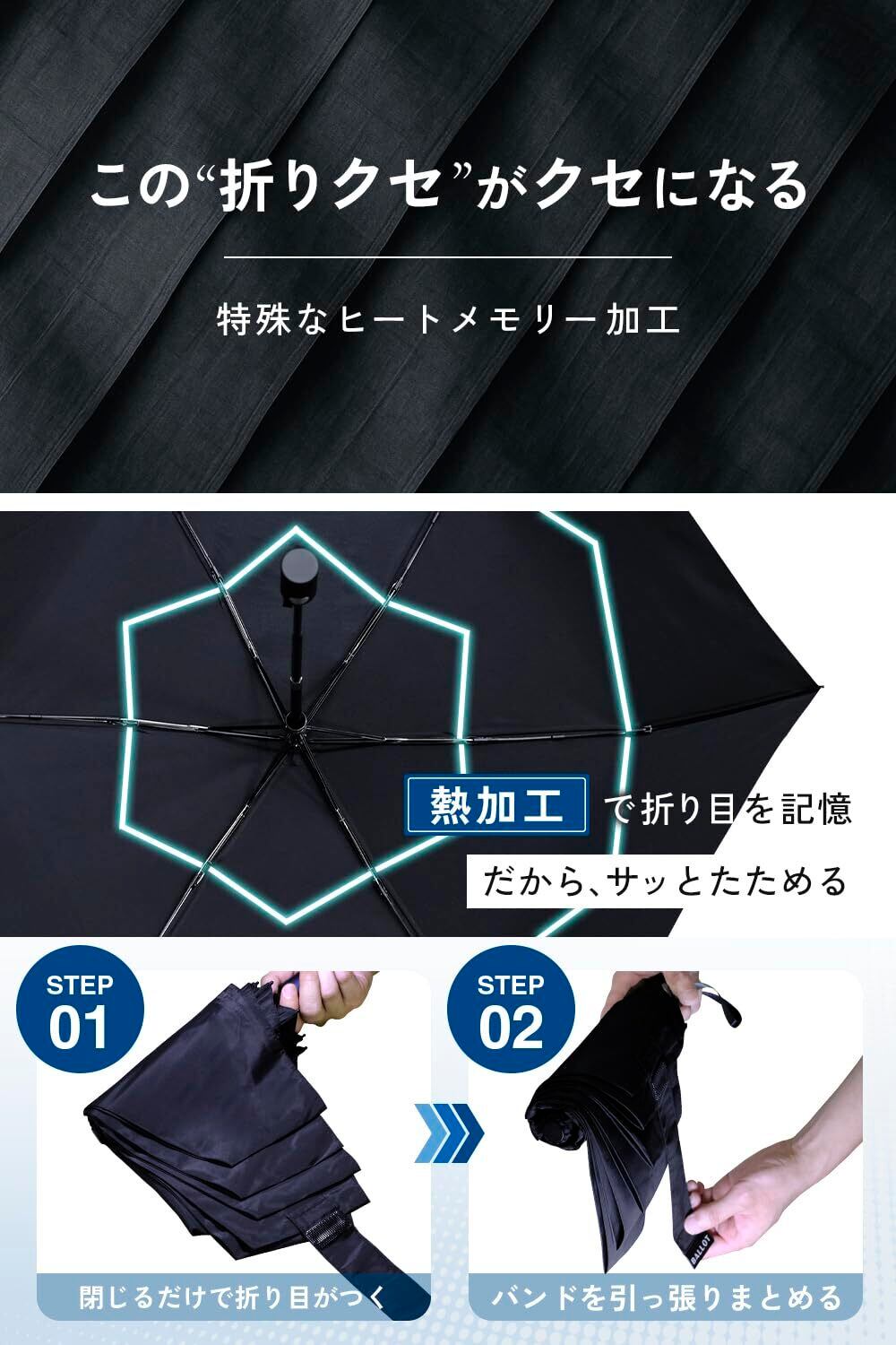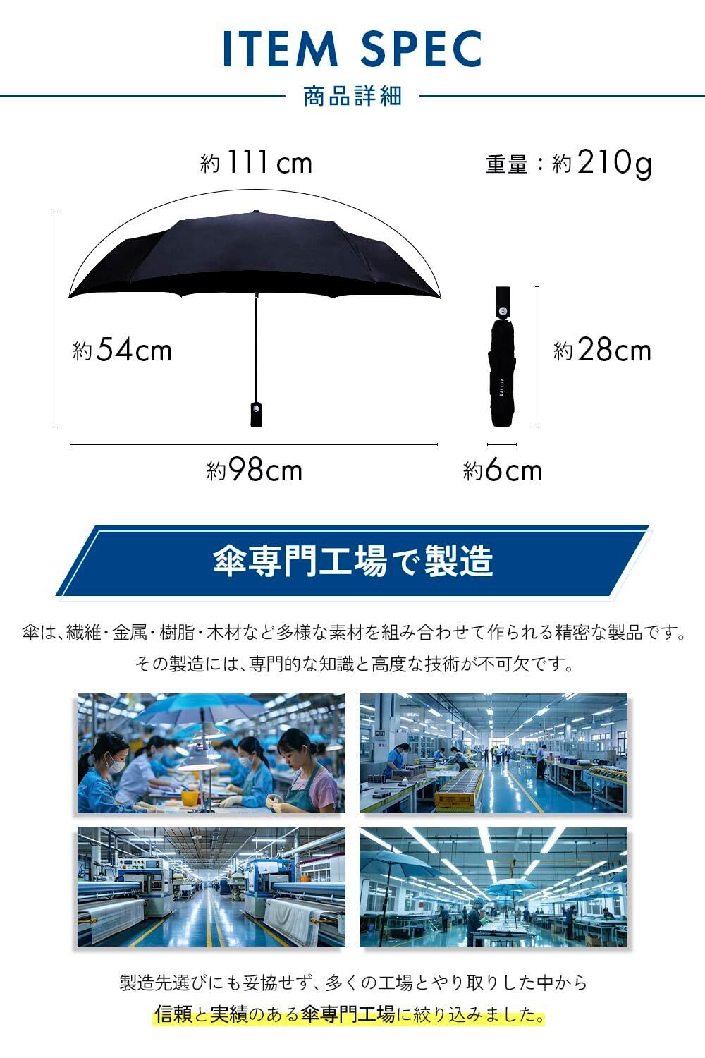 BALLOT 折りたたみ傘 折畳み傘 【形状記憶×超軽量210g】 自動開閉 ワンタッチ メンズ 撥水 耐風 コンパクト 逆戻り防止構造 この折クセがクセになる ブラック