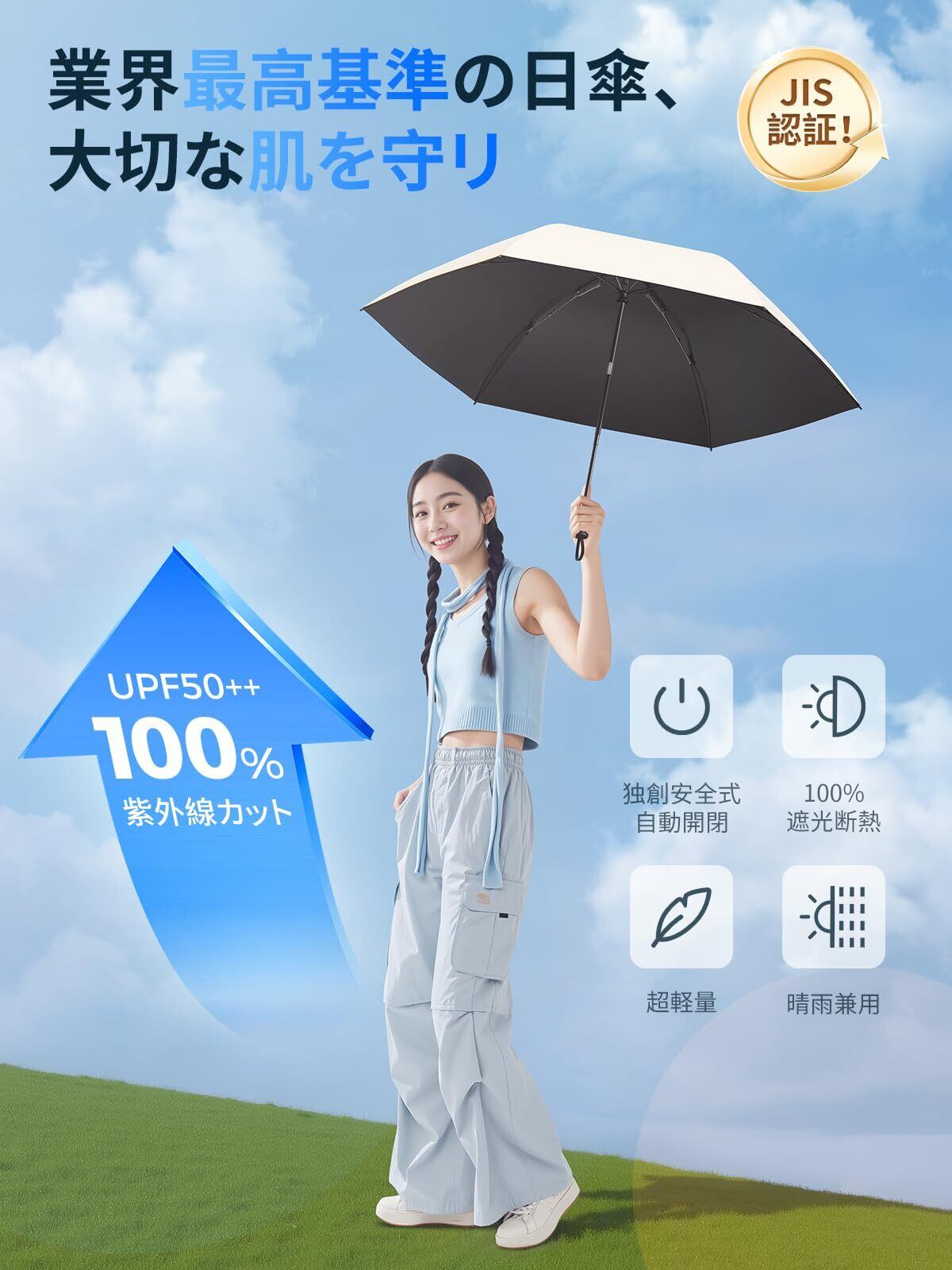 【JIS認証·現役皮膚科医監修】日傘 UVカット100遮光遮熱 折り畳み【業界初!改良型ワンタッチ自動開閉】UPEBおりたたみ傘 188g-230g超軽量 コンパクト 紫外線遮断 折りたたみ傘 耐風撥水 晴雨兼用 携帯便利 日傘メンズ/レディース/ガールズ/ガールズ/子供/大人兼用 収納ポーチ付き 母の日 父の日 お祝い 誕生日プレゼント2年品質