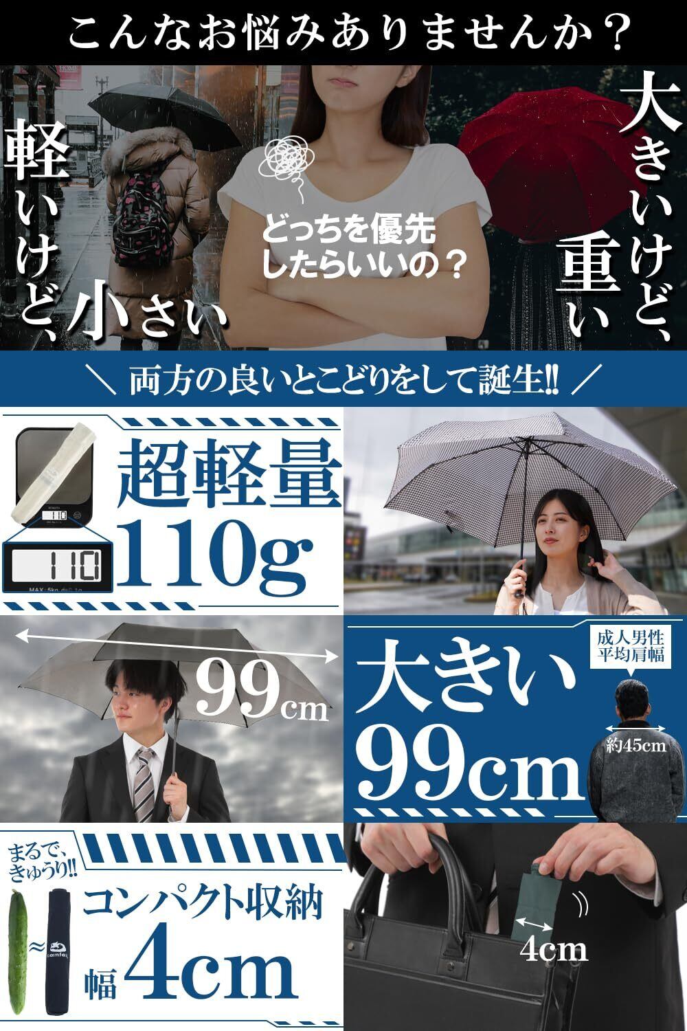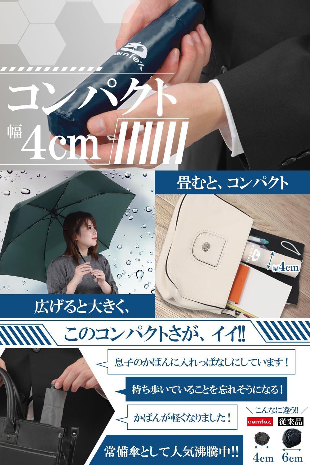 折り畳み傘 【軽量110gx直径99cmx持運びコンパクト】(日本のちょうどいい追及) 折りたたみ傘 傘 ワンアクション開閉 高撥水 安全反射材/露先 メンズ レディース ユニセックス comfox (コムフォックス)