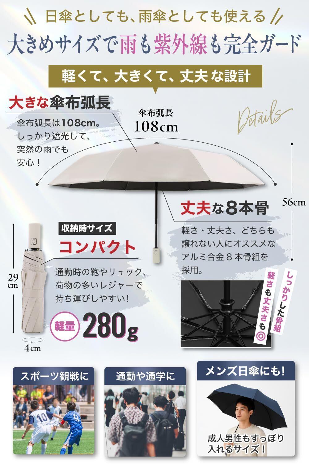 日傘 晴雨兼用 UVカット率100% 完全遮光 軽量 280g スマートセーフティロック機能 コンパクト 折りたたみ レディース メンズ 男女兼用 遮熱 携帯便利 ワンタッチ自動開閉