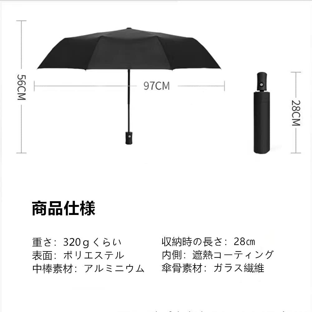 【 軽量&携帯便利】この折り畳み傘 メンズ 軽量 傘の重量は約330g、 この自動開閉折りたたみ傘は市場の自動開閉折り畳み傘(通常350-450g以上 )より25%軽いです。頑丈で耐久性のあるグラスファイバー製の傘骨を8本採用することで高強度を実現、一般的な折りたたみ傘よりも耐風性に優れています。折りたたみ後の長さは28cmで、通常の30cmよりもカバンに簡単に収納できます。