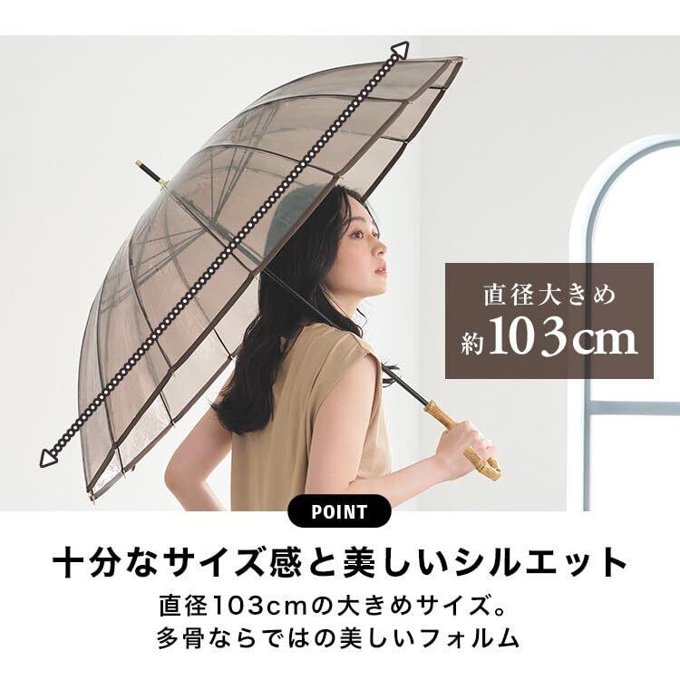 Wpc. 雨傘 [ビニール傘] 16Kプラスティックパイピング ブラウン 長傘 親骨60cm 大きい レディース 持ち手 バンブー 16本骨 丈夫 おしゃれ 映え シンプル 可愛い 通勤 通学 女性 PT-054-001