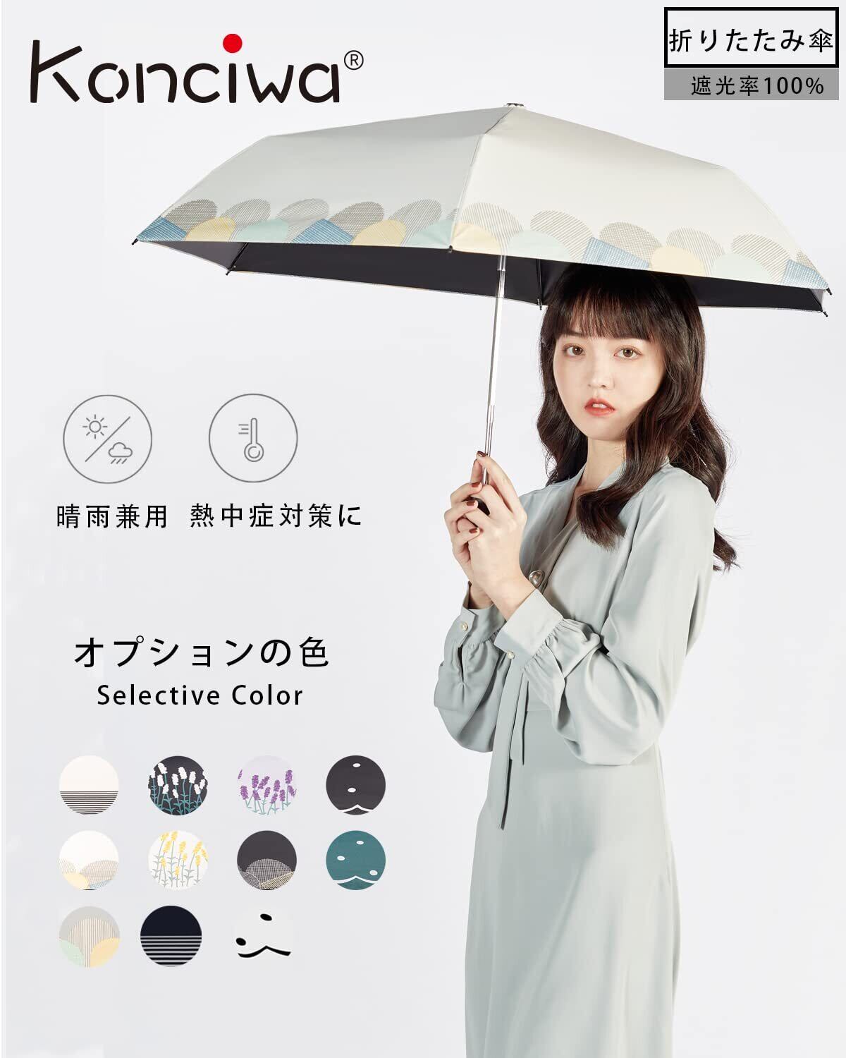 Konciwa【新登場】日傘 超軽量 ワンタッチ 自動開閉 国内機関遮光率100%認証 遮光 遮熱 UVカット 折りたたみ傘 コンパクト 折り畳み日傘 紫外線遮断 耐風撥水 晴雨兼用 携帯便利 メンズ レディース 母の日 父の日