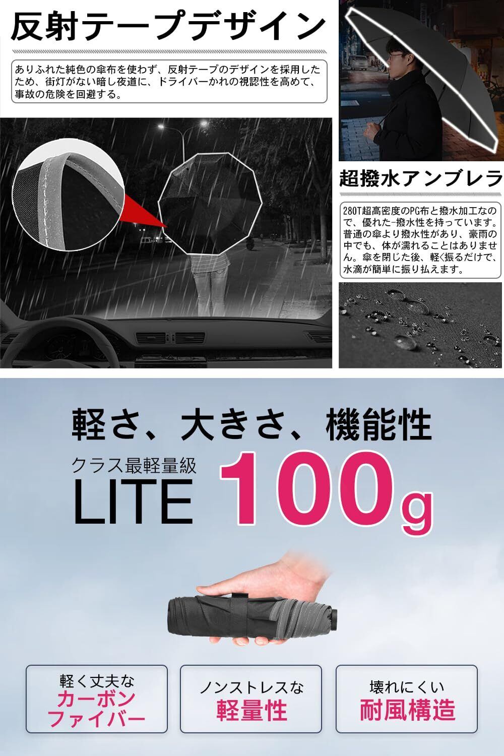 【2025最新 超軽量 カーボンファイバー 折りたたみ傘】手動折りたたみ傘は超軽量で頑丈なカーボンファイバーを採用、することで軽量性と耐久性を兼ね備えた折り畳み傘です。折り畳み傘 メンズ 軽量 傘の重量は約90g-140g、 ごこの手動開閉折りたたみ傘は市場の自動開閉折り畳み傘(通常200-300g以上 )より60%軽いです。重さを気にせず、カバンに楽々常備できます。毎日持ち歩いても負担になりません。