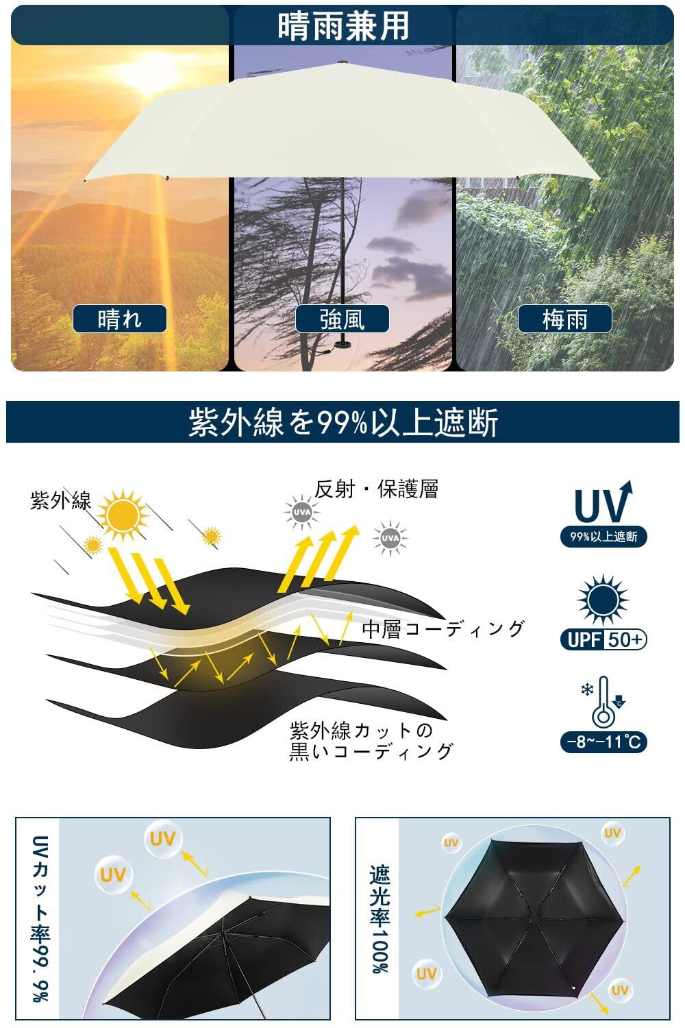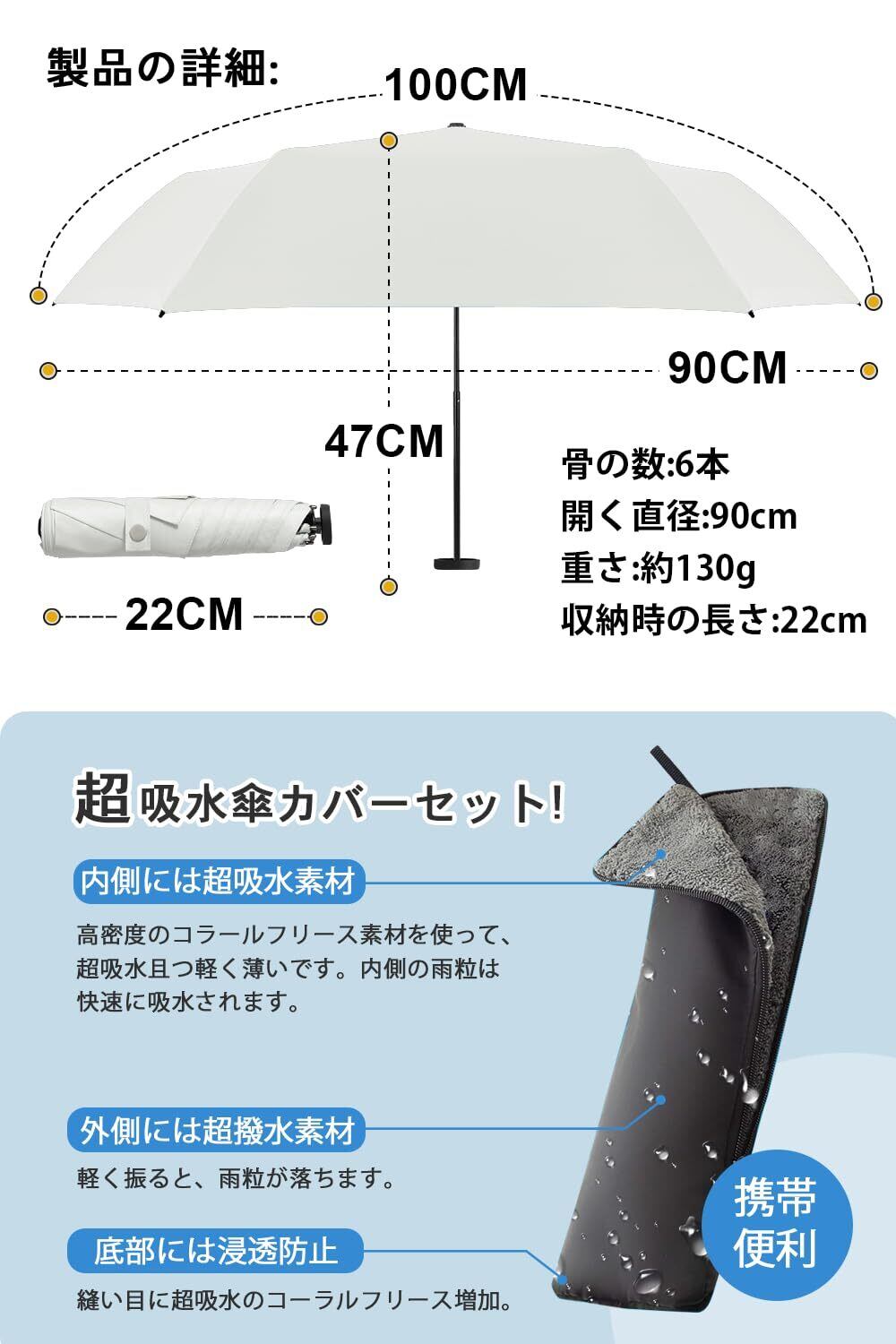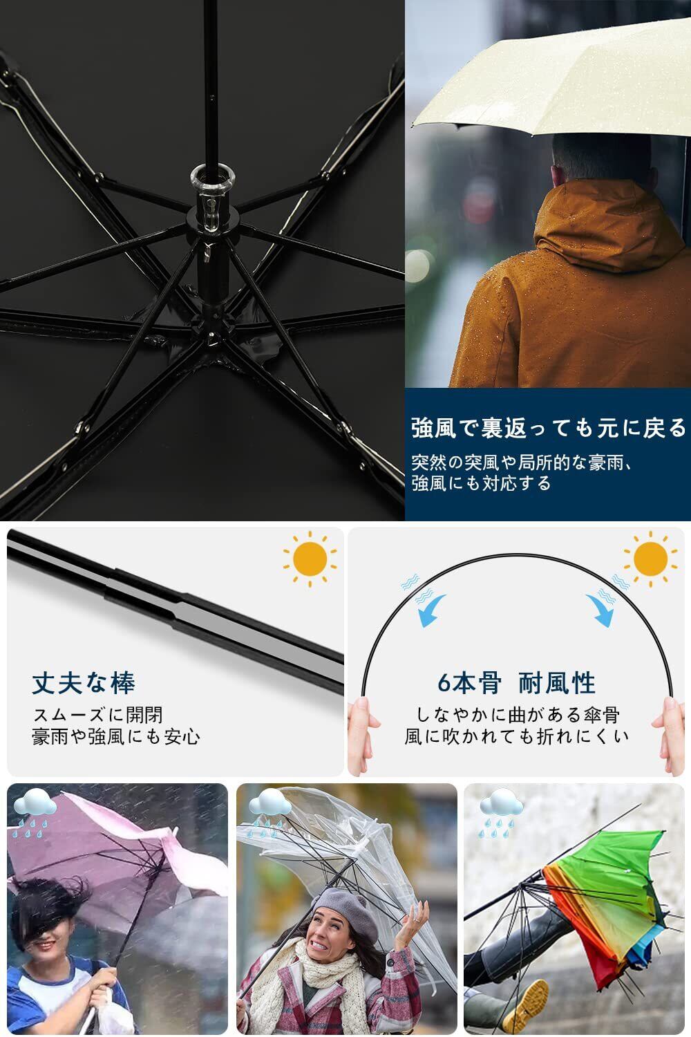 【超撥水】高密度の防水傘布、軽い揺れは水を振り落とすことができます。耐風、撥水、晴雨兼用。