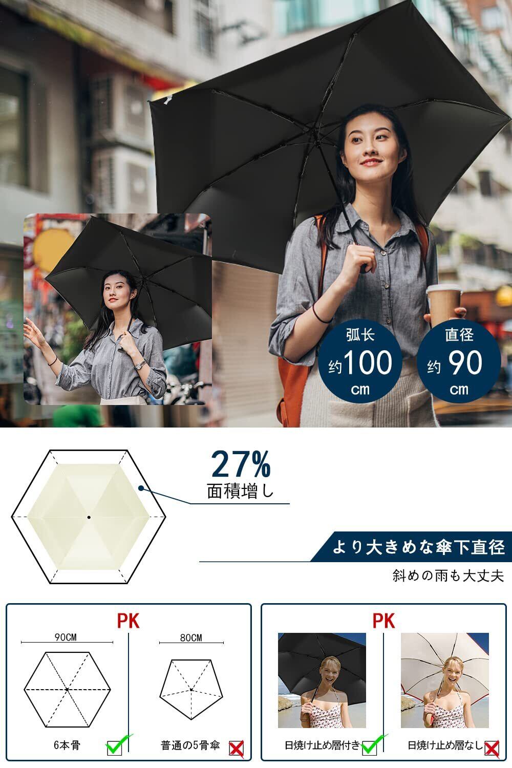 【持ち運び便利】長さ22cm、幅4cmに折りたためるので、バッグやポケットにすっぽり収まります。晴雨兼用。持ち歩いて、外出に負担がない。折りたたみ傘はいつでも使い勝手が良く、突然の雨でも安心です。
