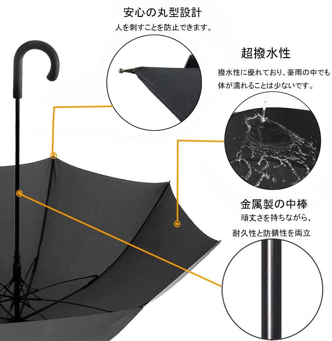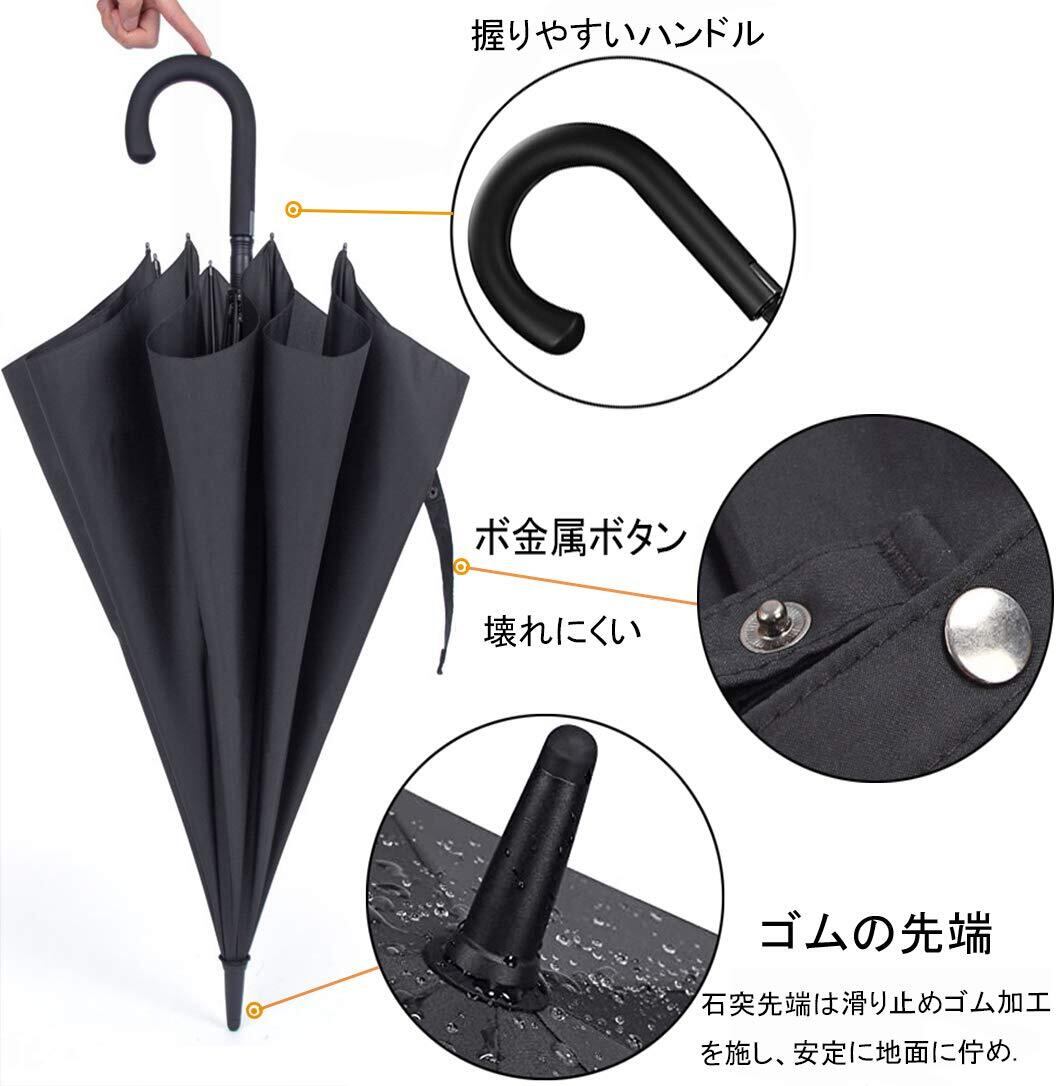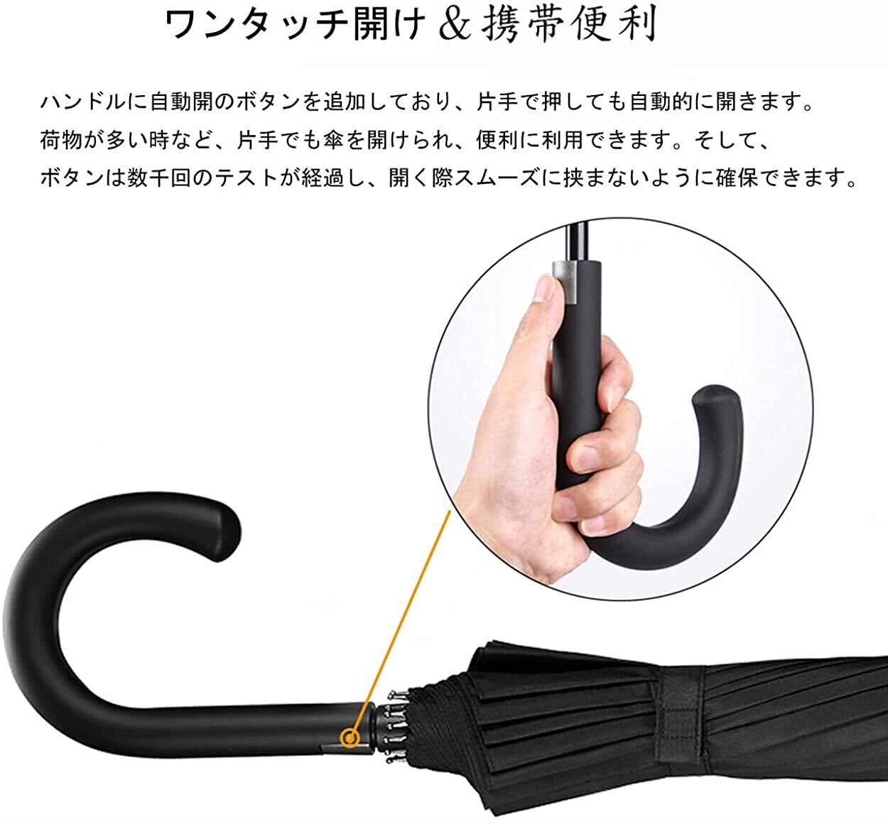 傘 メンズ 長傘 軽量 紳士傘 16本骨 大きい 耐風 撥水 悪天候に強い 高強度グラスファイバー 大きい ゴルフ 自動開け 収納ポーチ付き(